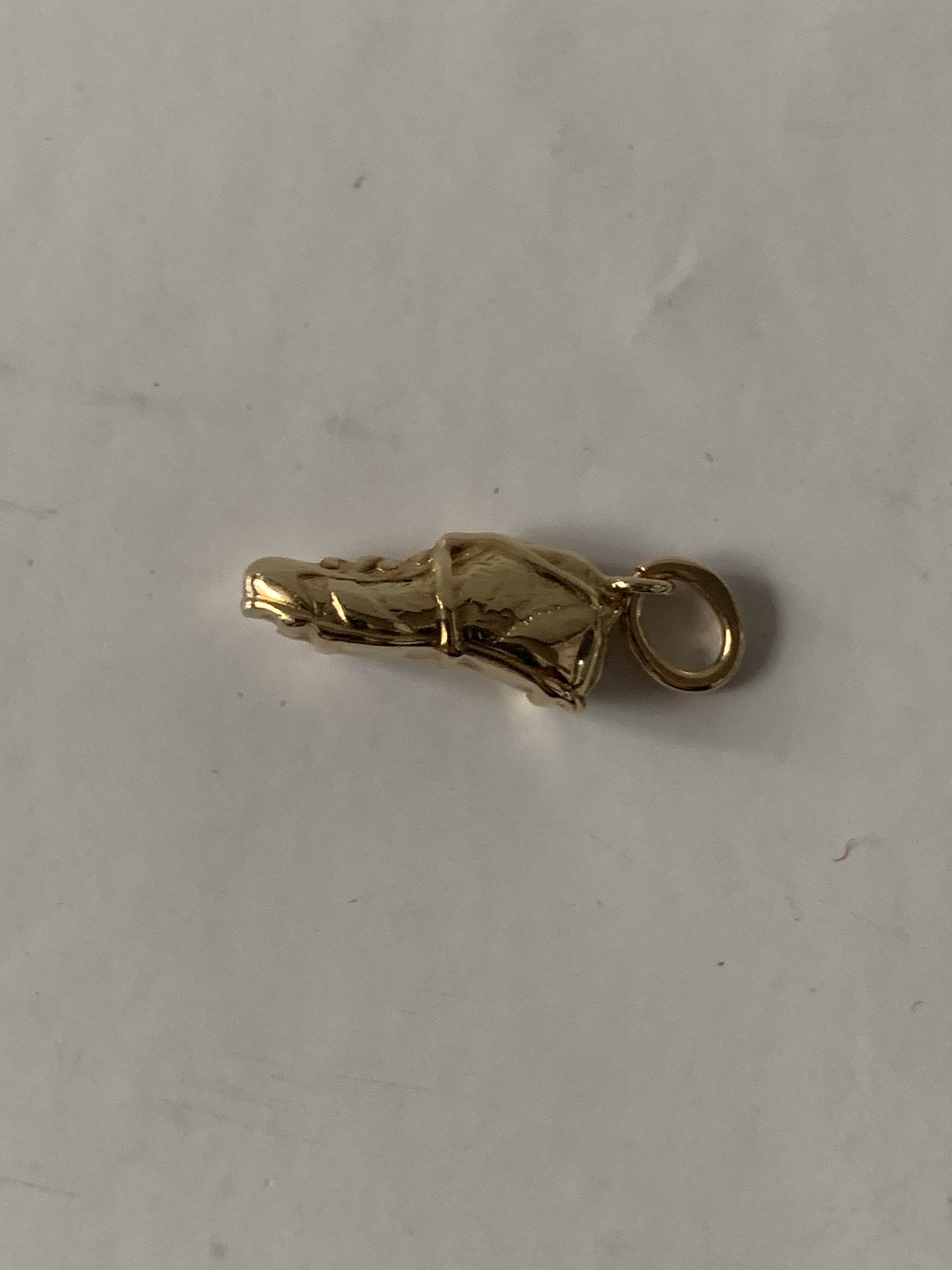 Charm shaped like soccer shoes in 14 carat gold, stamped 585.