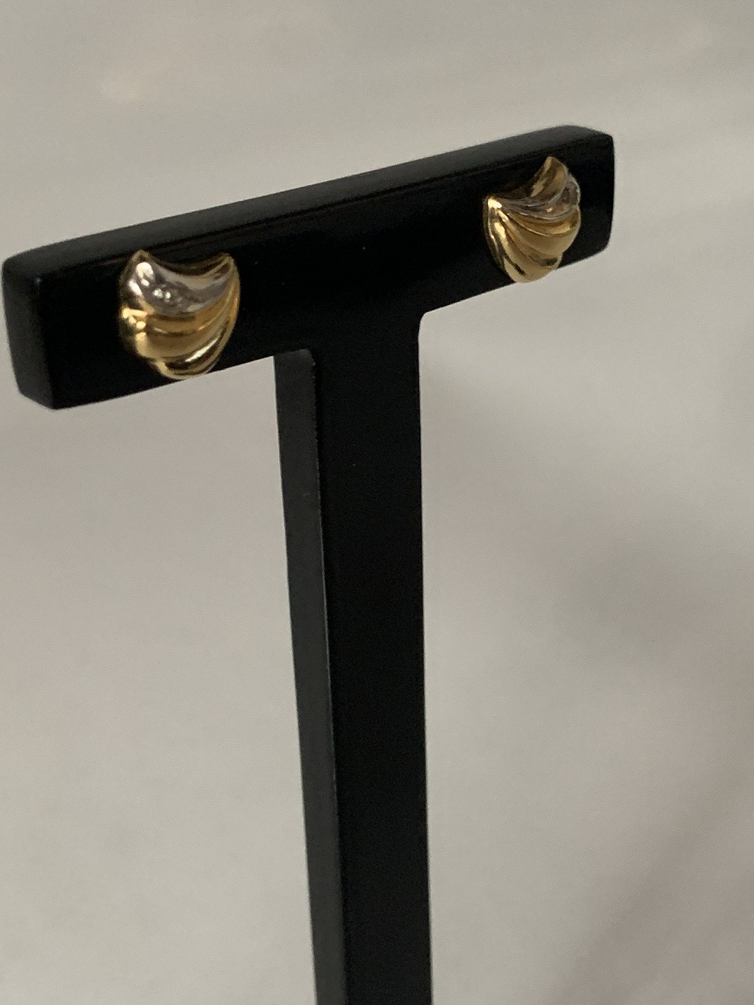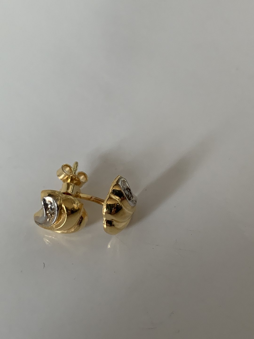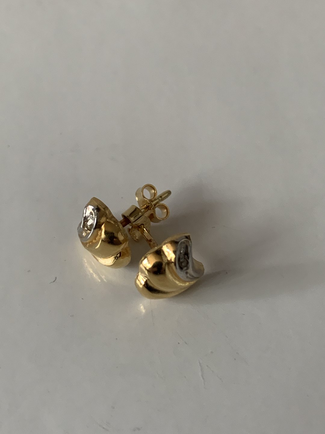 Ørestifter i 14 karat rød- og hvidguld med indlagt brilliant.