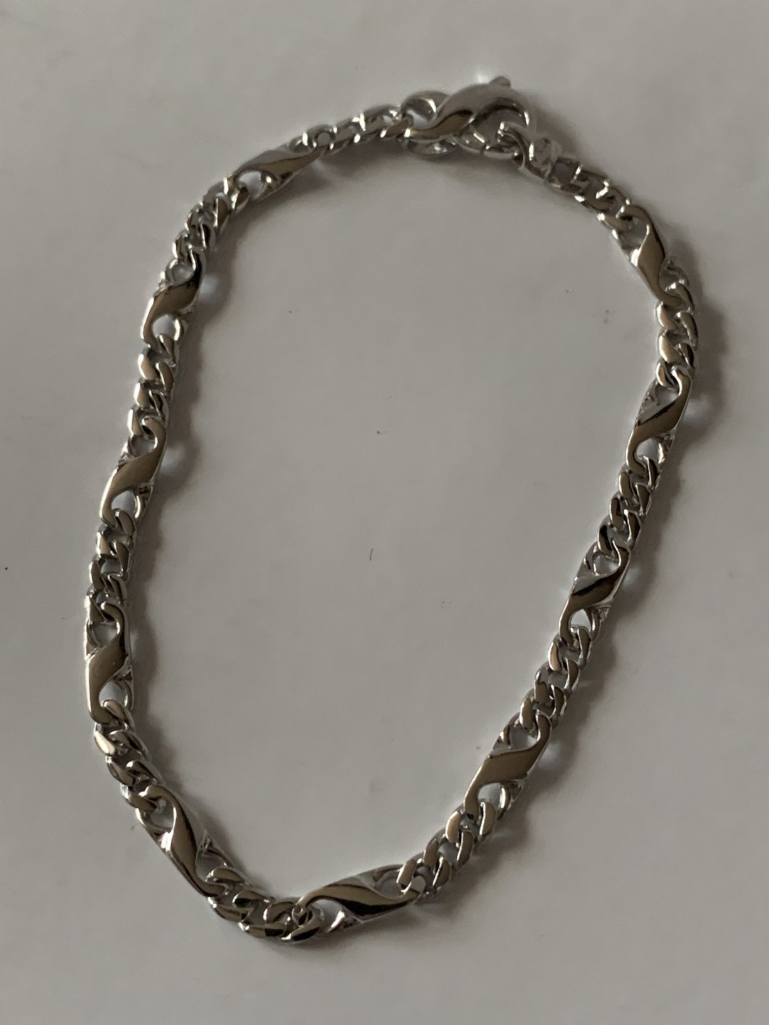 Simple but elegant gold chain in 14 carat white gold, with lobster clasp. Care has been taken with the details and the bracelet has a very exclusive look. The combination of small and longer joints provides good comfort around the wrist, making it a joy wearing it all day. Use the gold bracelet in combination with other bracelets, or alone. This gold bracelet can do both.