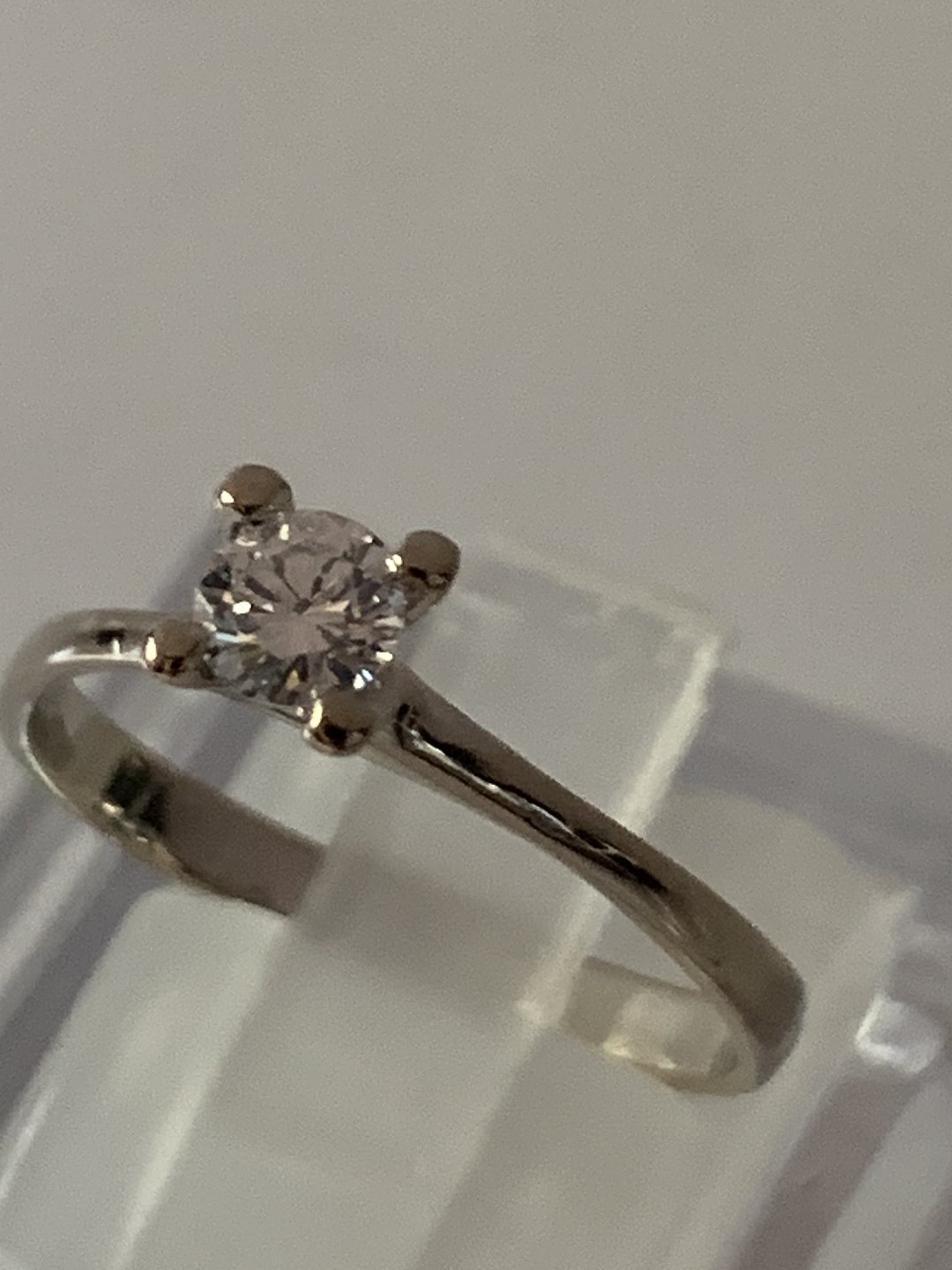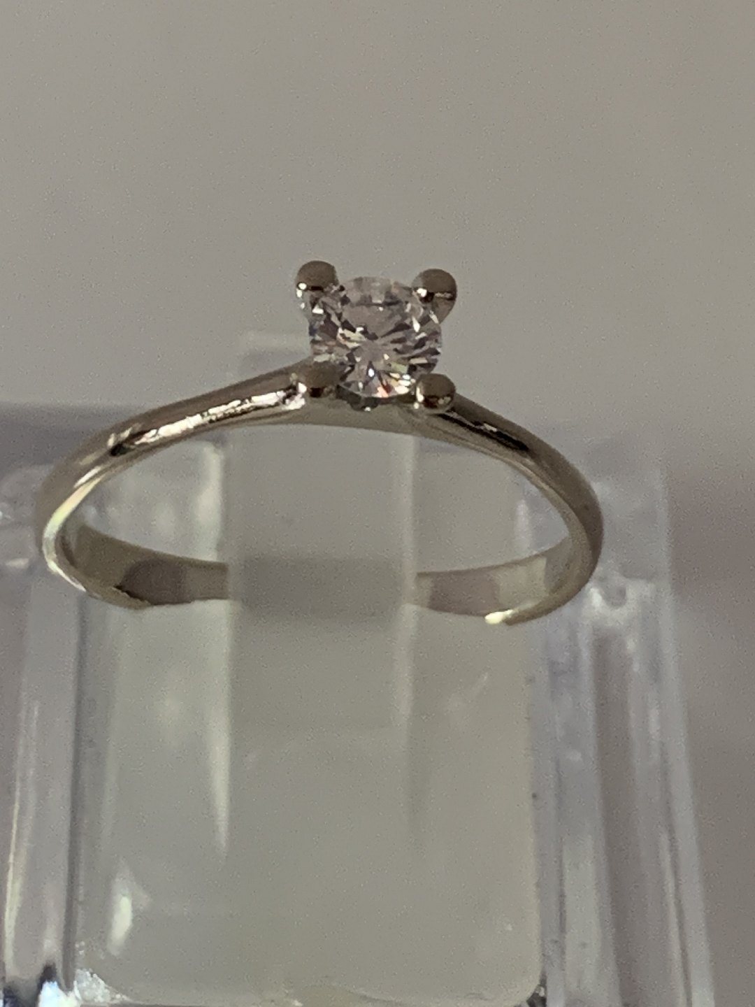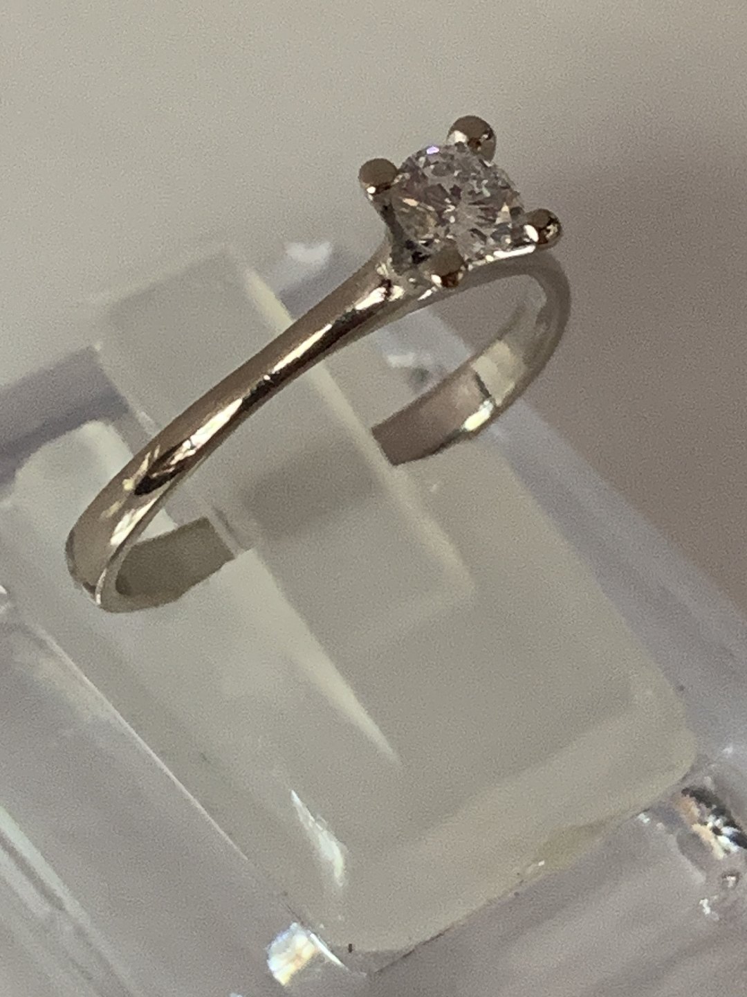 Women's ring 18 carat white gold, with diamond. Stamped PKL 750, size 51.