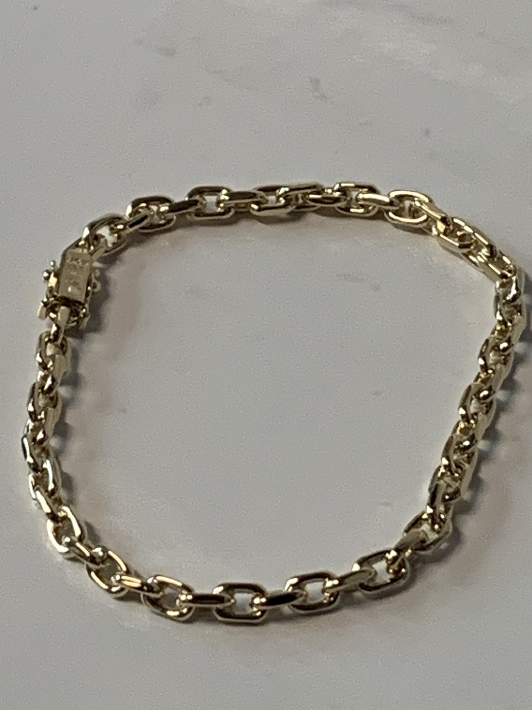 Smuk guld armbånd i 14 karat guld med kasselås. Kæden er udført med simple led, der gør kæden diskret men samtidig elegant. Den er minimalistisk omkring armen, og hvis det ønskes kan der hænges charms på kæden.