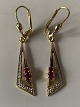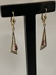 Beautiful gold earrings with 2 red rubies and a diamond hanging in the earring. This gives the earrings a light and timeless look. The earrings hang in the earring and follow the movements of the head.
