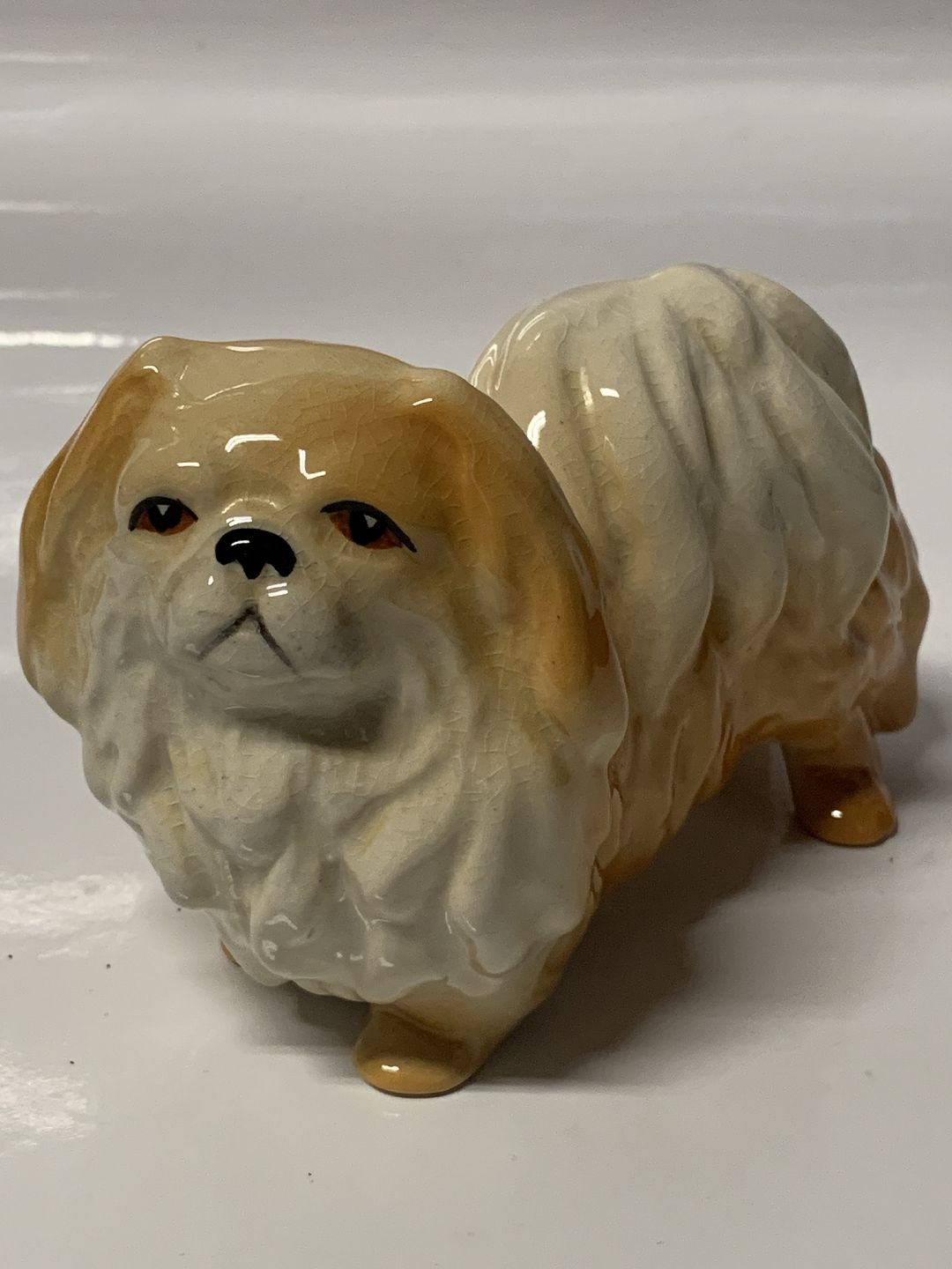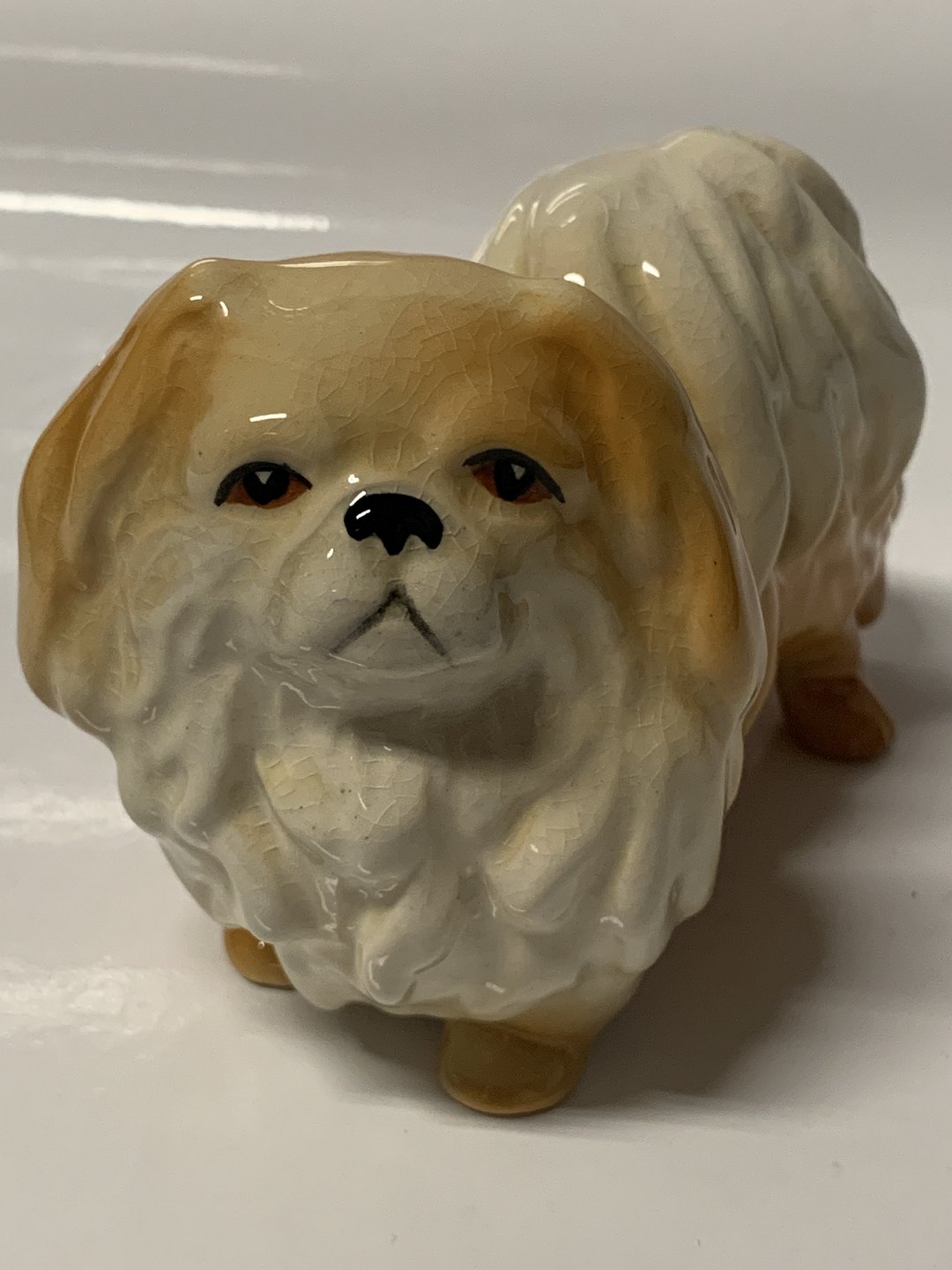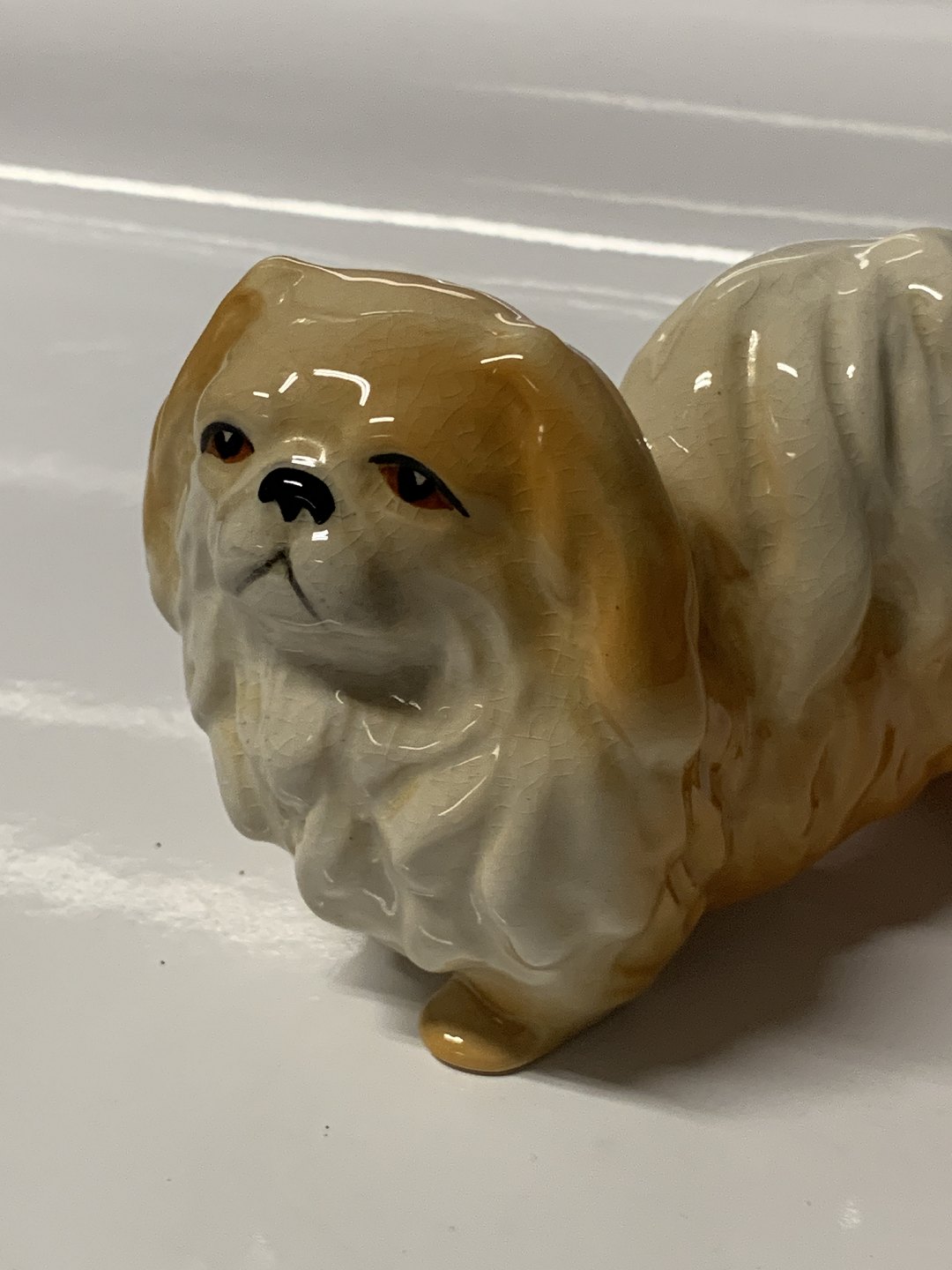 Hvid porcelænsfigur af kongepuddel, siddende. Flot