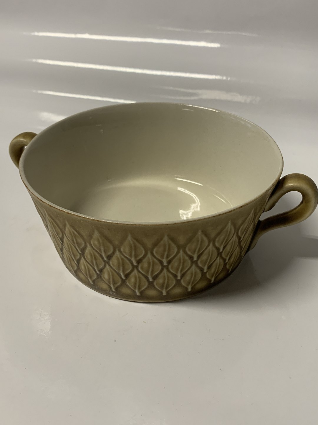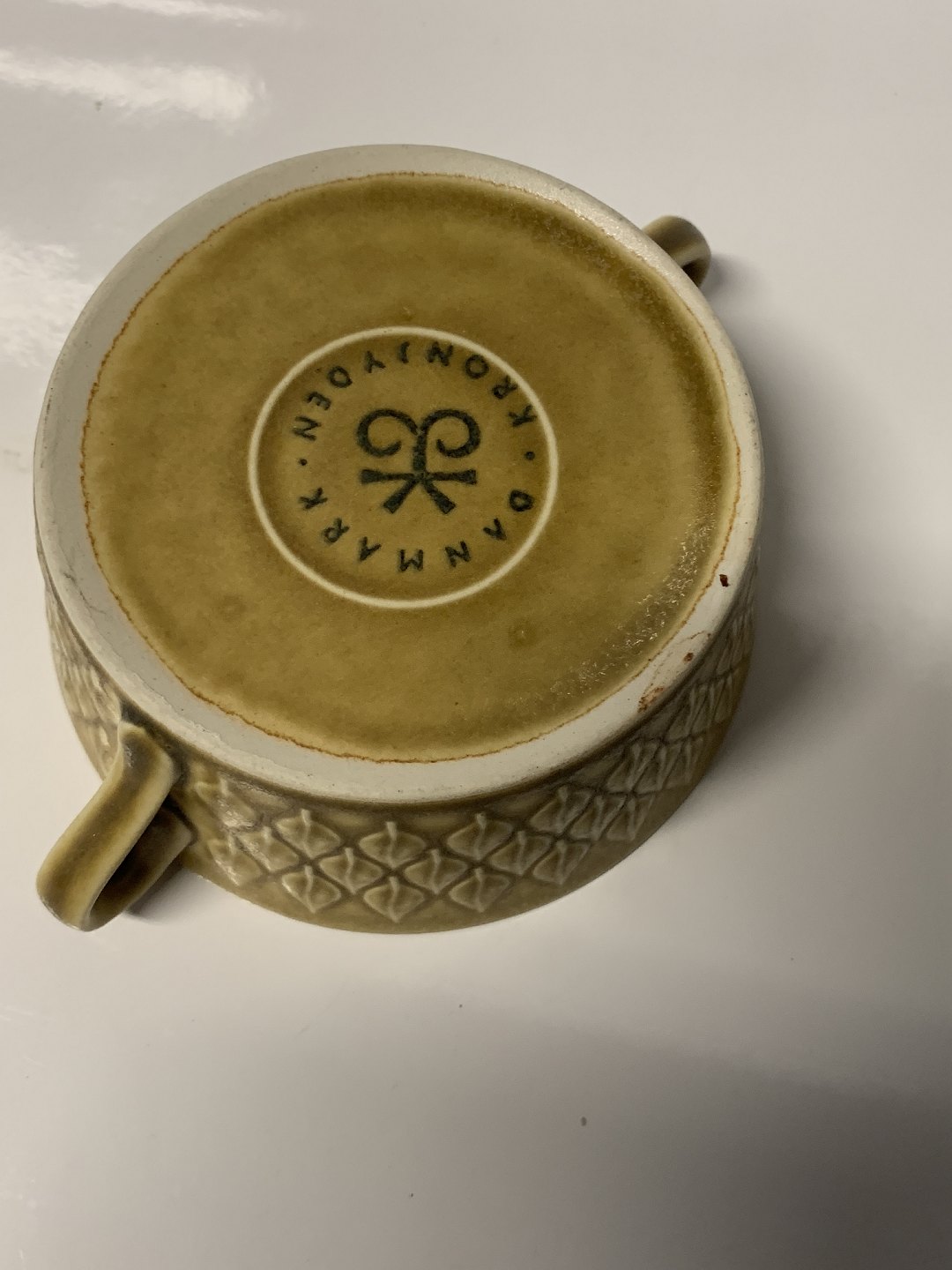 Relief Nissen Kronjyden stentøjsstel Bouillonkop Bladformet mønster Mål 15 cm Højde 5 cm Pæn og velholdt Se i øvrigt vores store udvalg af kaffe-spisestel her: https://www.antikhuset.net/katindex.asp?kukat=553