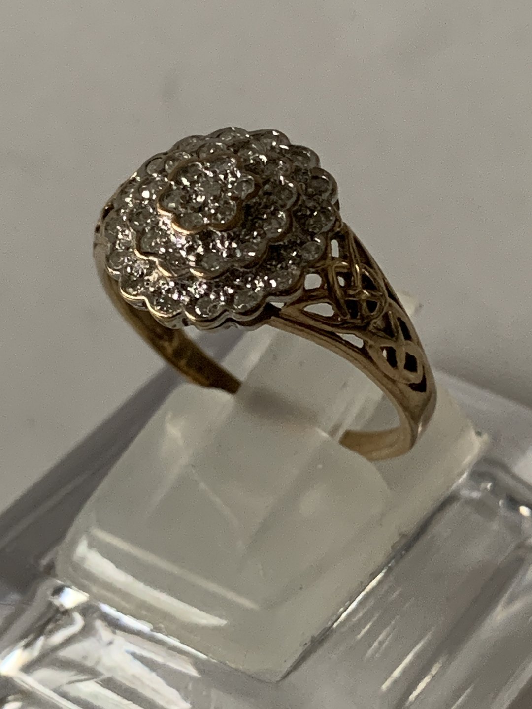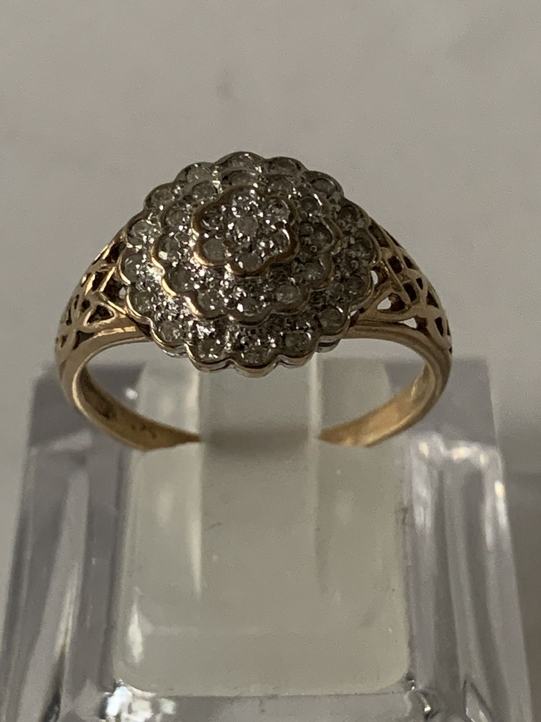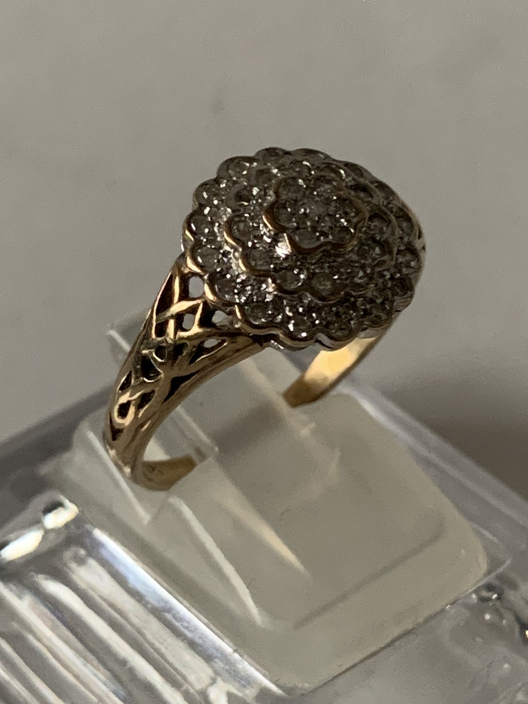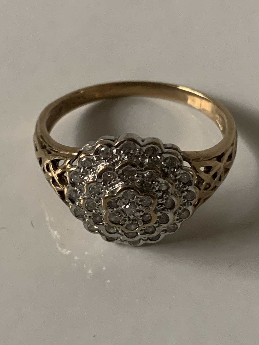 Gold Ring with Diamonds, 9 Carat Stamp: 375, England, .25 Ring size 59 / 18.78 mm Nice and well-maintained condition. The item is not physically available in the store Contact us for a demonstration