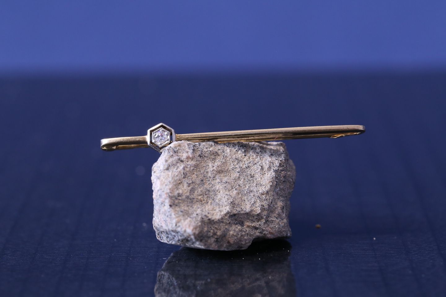Flot guld guldbroche i 14 karat guld med indlagt hexagonal brillant. Stemplet WG 585.