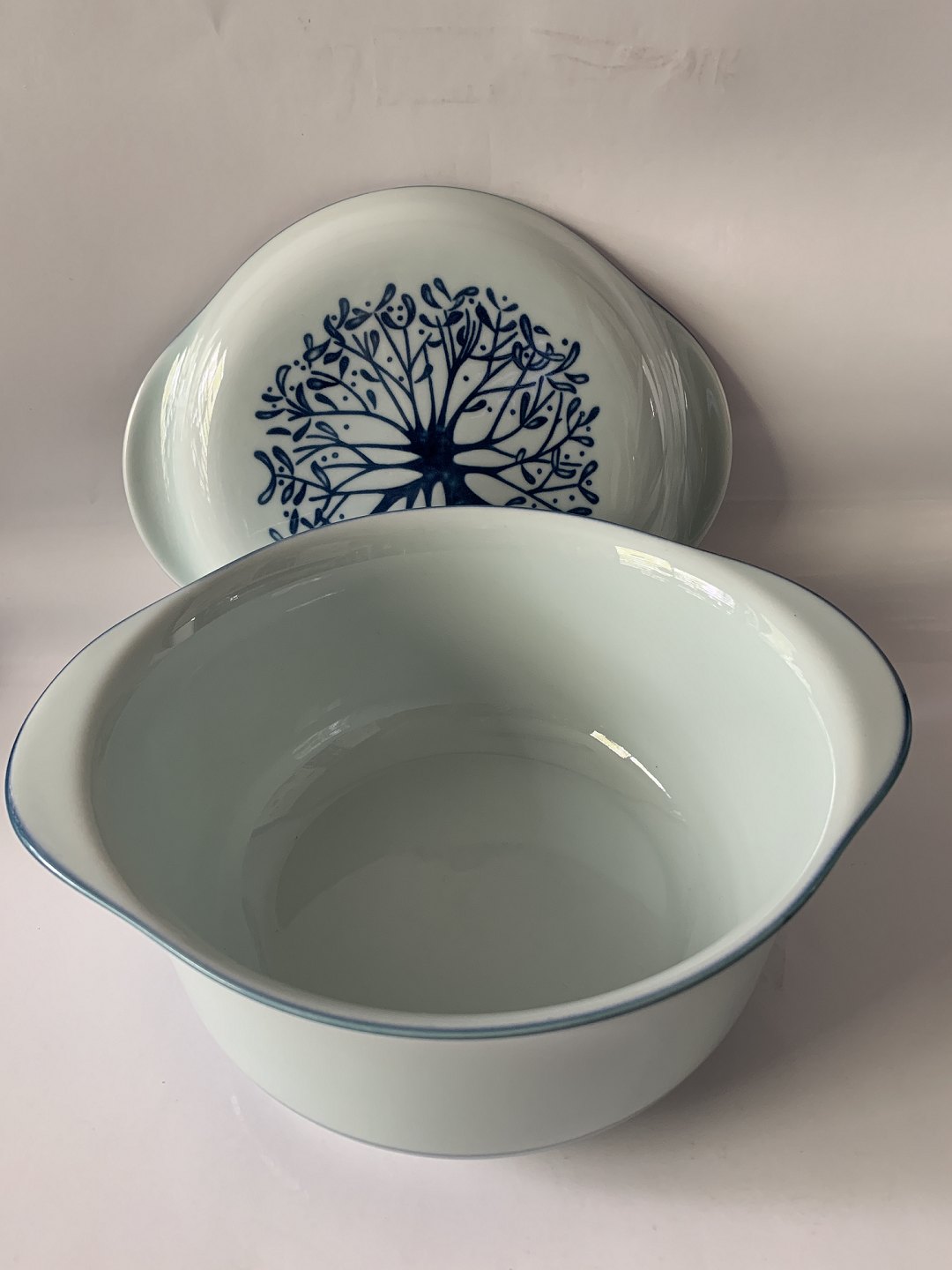 Mistletoe, Desiree, Bowl with lid and handle. Width 20.5 cm. Length with handle 24 cm Height with lid 14 cm. Manufacturer: Desiree Denmark. Well maintained condition.