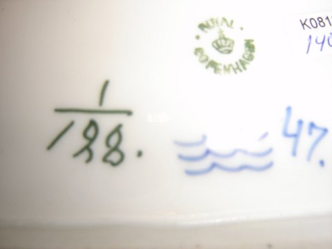 Kongelig Musselmalet Riflet, Skrivetøj med et huse fra før 1923 Dek. nr. 1/128 på bakke Måler 22 x 15 cm. Låget til huset er m/skår