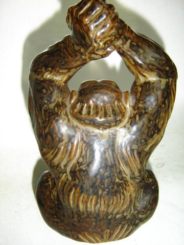 Royal Copenhagen Stone Ware Figurine, Monkey (chimpanzee) designed mr. Knud Kyhn.