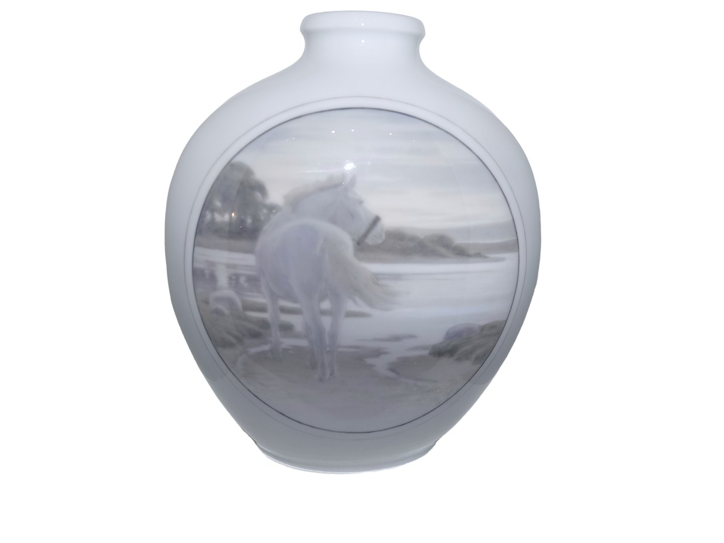 Royal Copenhagen Art Nouveau, large vase decorated with a horse and signed by artist Gotfred Rode. The vase is dated April 28th. 1926.