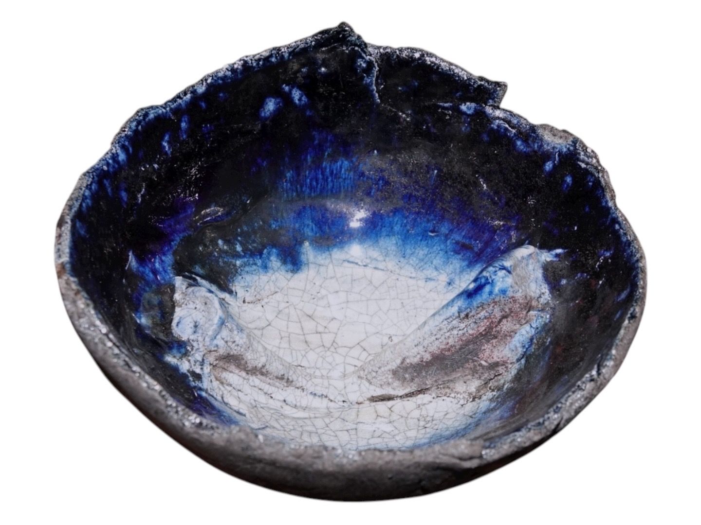 Unknown artist, large blue Lava art pottery bowl from around 1970 to 1980.