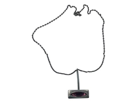 Jørgen Jensen Pewter, large pendant with purple glass stone and necklace.