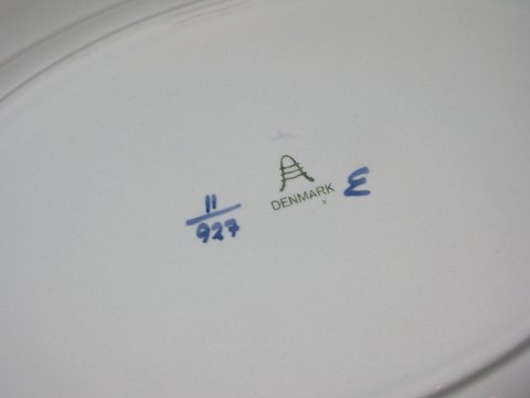 Aluminia Tranquebar, ovalt stegefad. Dekorationsnummer 11/927. 1. sortering. Længde 28 cm. Perfekt stand uden fejl.