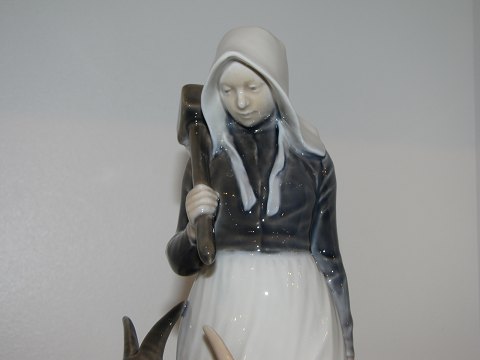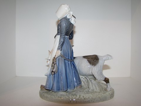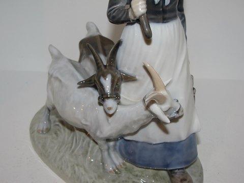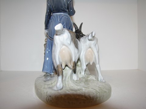 Stor Royal Copenhagen figur, bondepige med to geder. Stemplerne viser, at denne er produceret i mellem 1969 og 1974. Dekorationsnummer 694. 3. sortering. Måler 23 x 19 cm. Perfekt stand uden fejl.