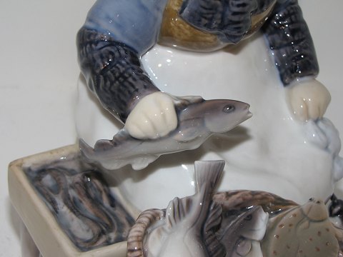 Stor Bing & Grøndahl figur, fiskerkone med forskellige fisk.