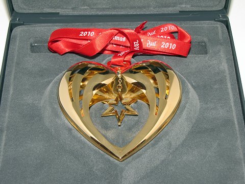 Georg Jensen Juleuro fra 2010 - Hjerte. Messing belagt med 24 karat bladguld. Ligger i original æske med originalt bånd. Fin og velholdt stand.