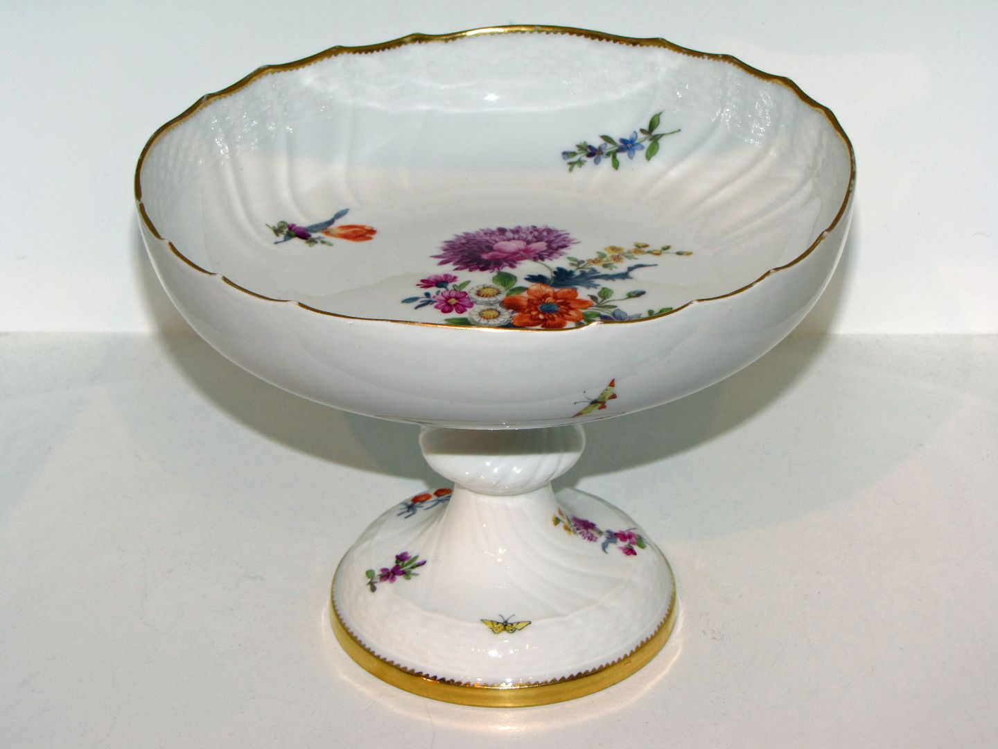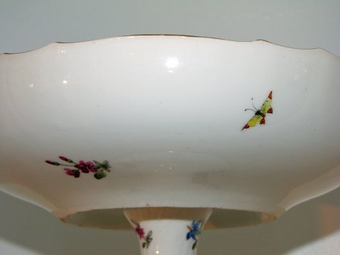 Royal Copenhagen Fuld Saksisk Blomst, kageopsats dekoreret med blomster og små insekter.