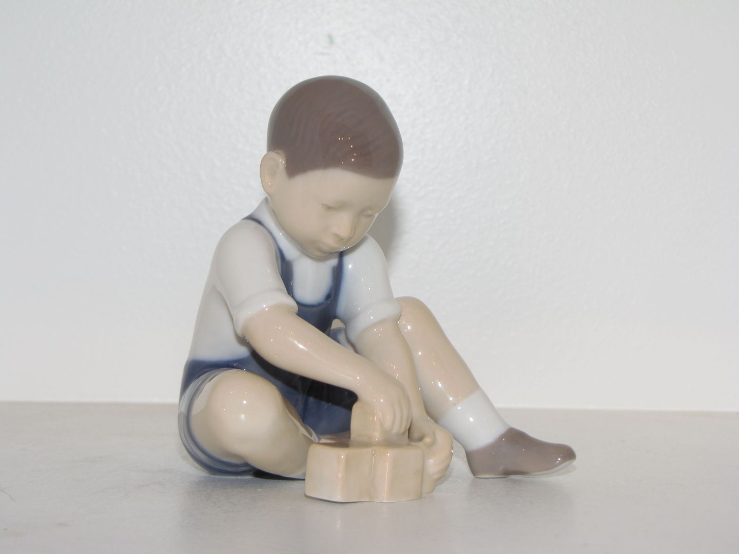 Bing & Grøndahl Figur, dreng leger med klodser.