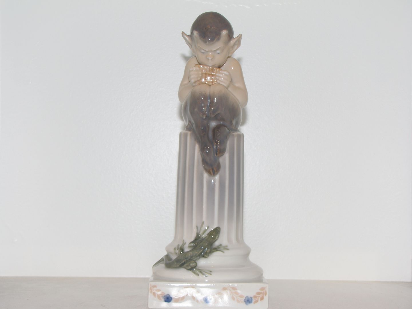 Royal Copenhagen Figurine, Faun sitting on pedestal with lizard on base.