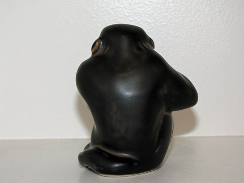 Royal Copenhagen stentøjsfigur, lille abe. Designet af Knud Kyhn. Dekorationsnummer 20187. 1. sortering. Højde 7,8 cm. Perfekt stand uden fejl.