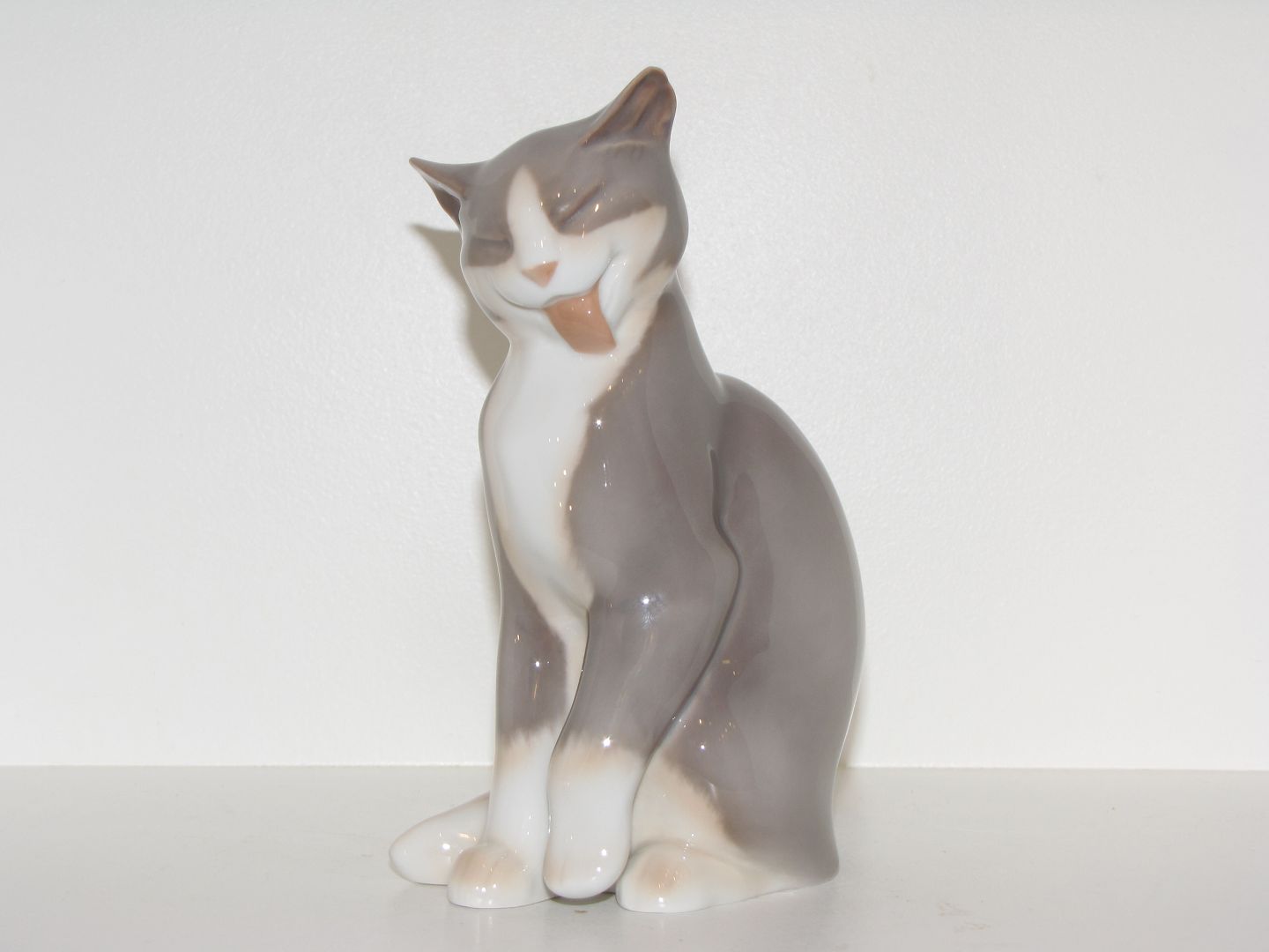 Bing & Grøndahl Figur Grå kat med hvid ...
