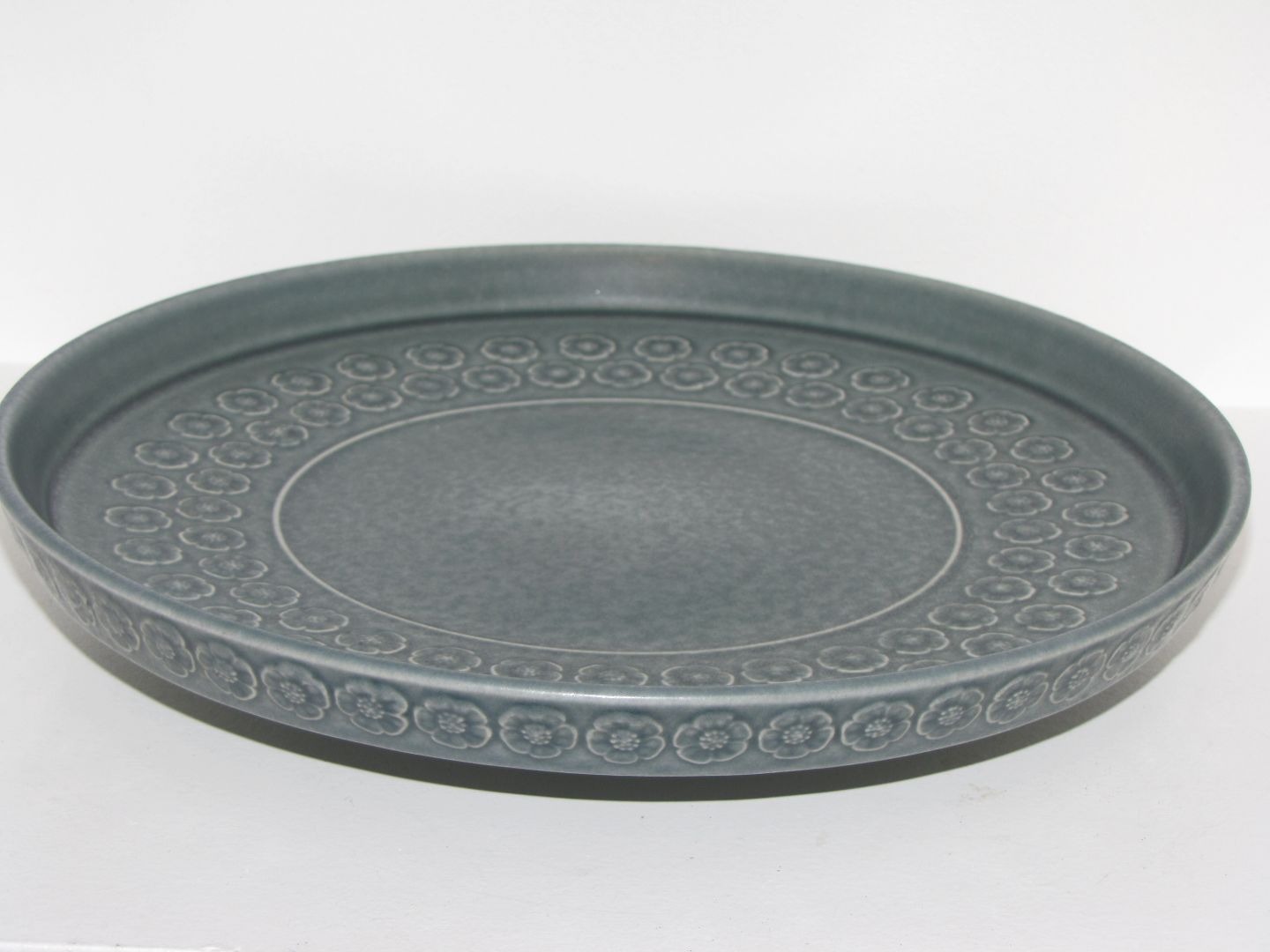 Kronjyden Azur stoneware, large round platter on stand. Designed by Jens Harald Quistgaard. Diameter 26.0 cm. Perfect condition.