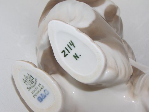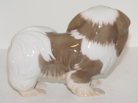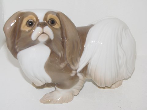 Bing & Grøndahl hundefigur, Japanese Chin. Fabriksmærket viser, at denne er fra mellem 1952 og 1958. Dekorationsnummer 2114. 1. sortering. Længde 17,5 cm., højde 12,0 cm. Perfekt stand uden fejl.