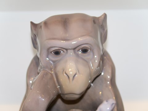 Kæmpe Bing & Grøndahl figur, abe siddende med skildpadde - kaldet "Filosoffen".