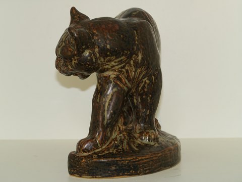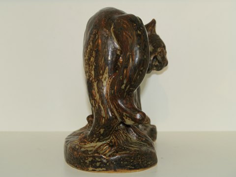 Large Royal Copenhagen stoneware figurine, lynx on socket. Designed by artist Knud Kyhn. Decoration number 21645. Factory first. Length 21.0 cm., height 20.0 cm. Perfect condition with no chips, cracks or repairs.