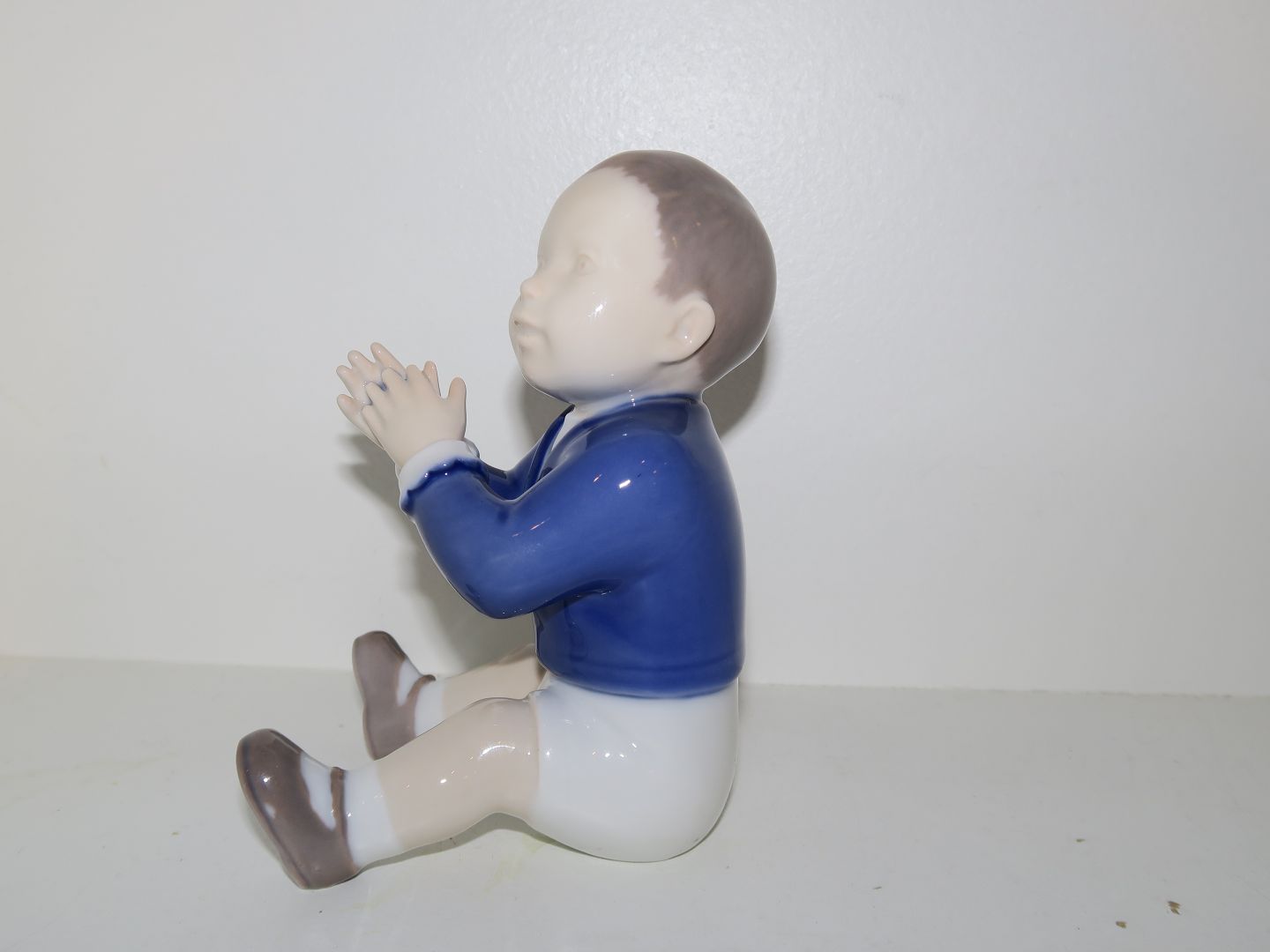 Bing & Grøndahl Figur, dreng fletter fingre. Af fabriksmærket ses det, at denne er produceret mellem 1952 og 1958. Dekorationsnummer 2337. 1. sortering. Højde 11,5 cm. Perfekt stand uden fejl.