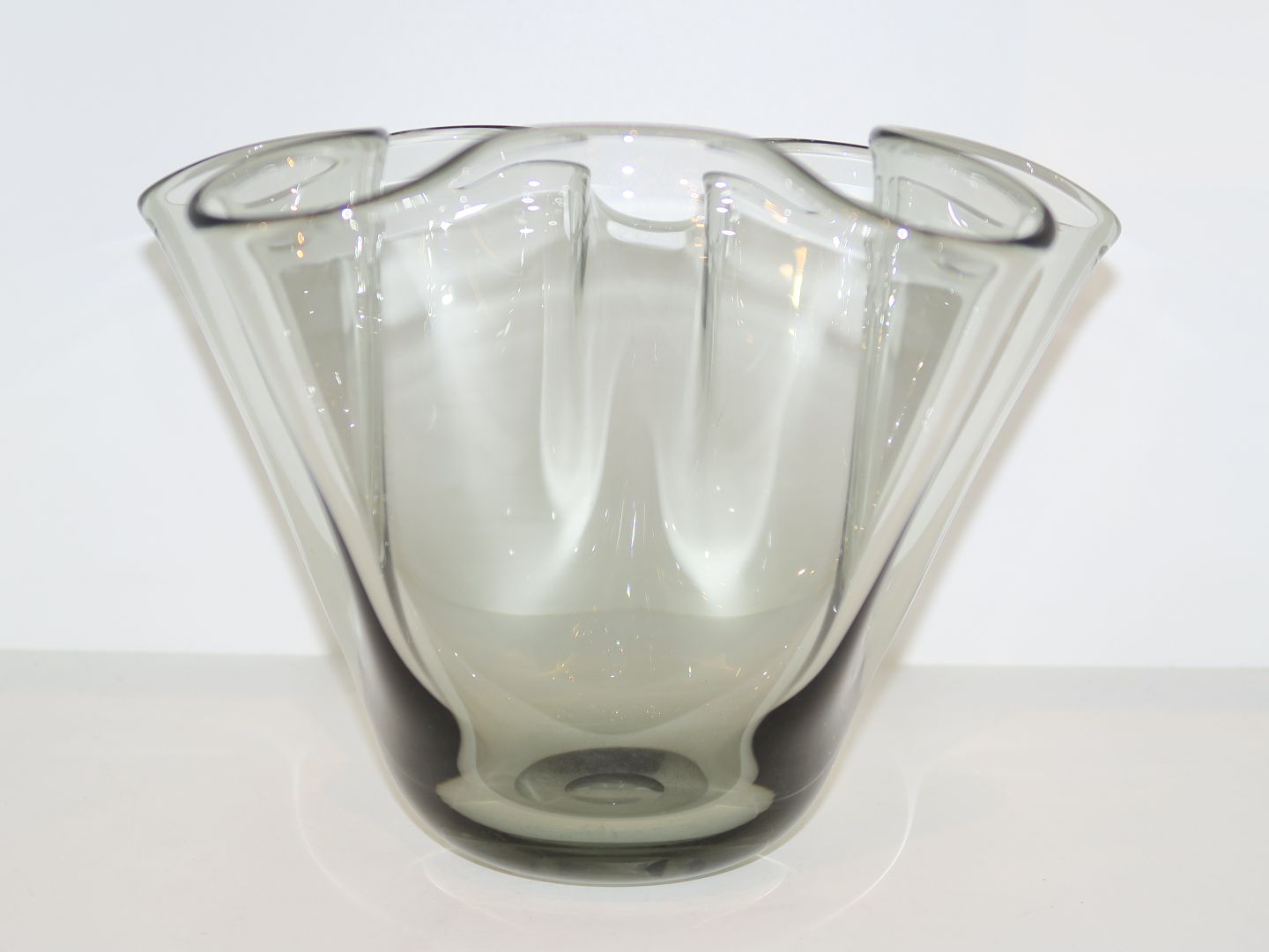 Holmegaard, stor foldet frugtskål kaldet Laguna. Designet af Per Lütken i 1989. Måler 24 x 24 cm., højde 18 cm. Perfekt stand uden fejl.