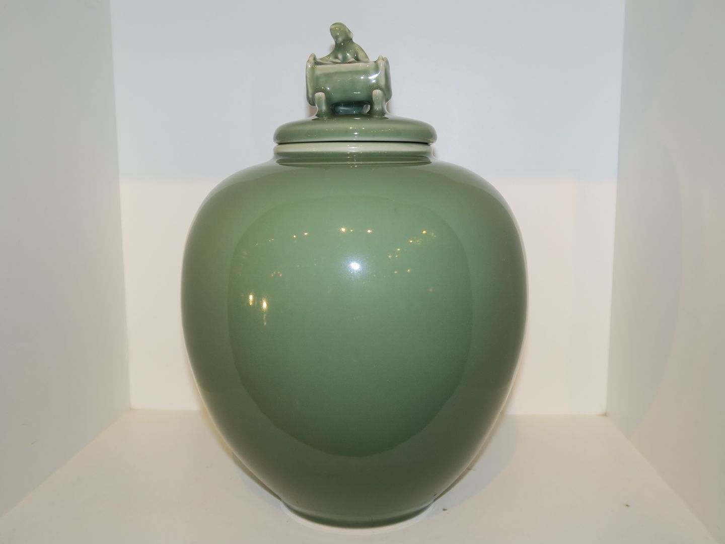 Royal Copenhagen keramik, stor og tung vase med låg, dekoreret med "Mor og vugge".