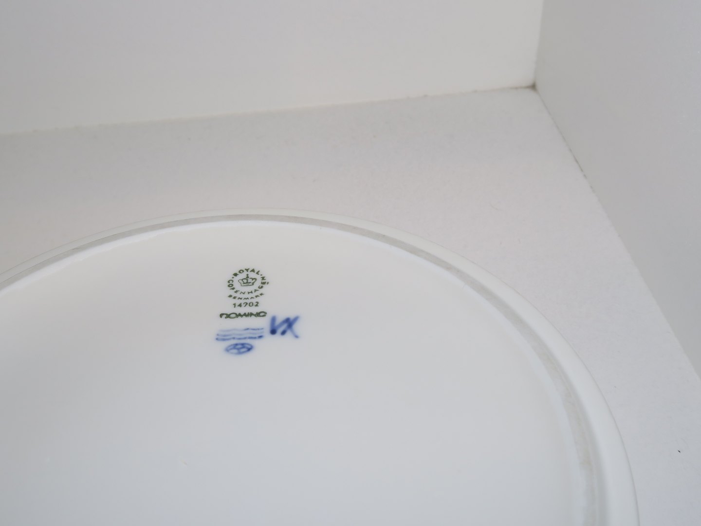 Royal Copenhagen Domino, skål med låg. Dekorationsnummer 14902. Medarbejdersortering Diameter 18,2 cm. Perfekt stand uden fejl.