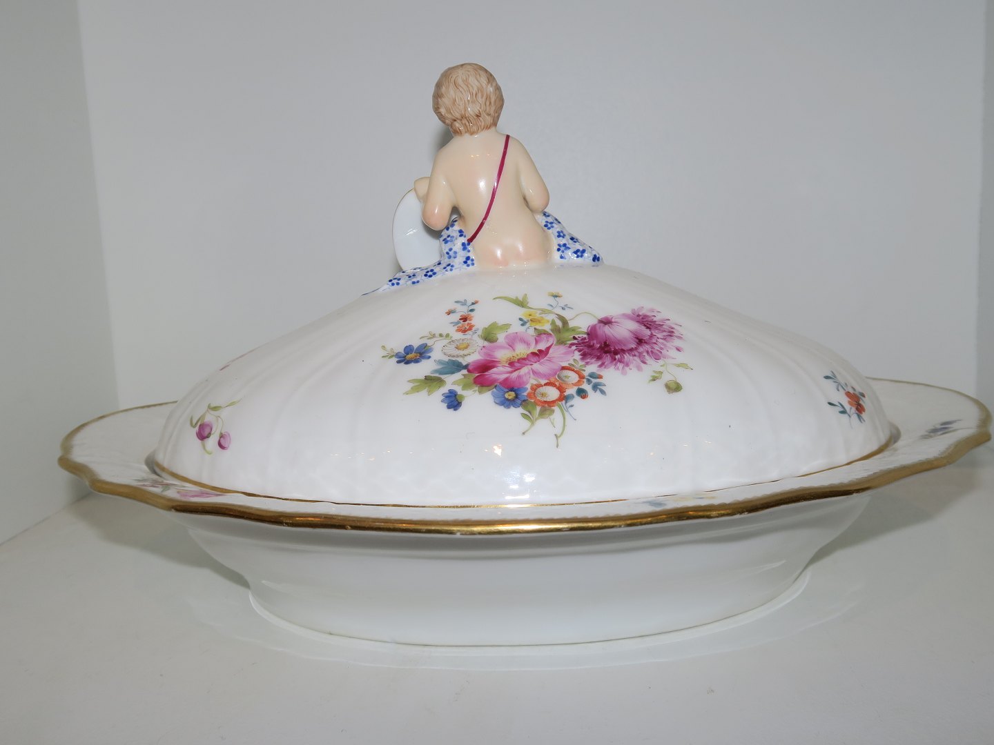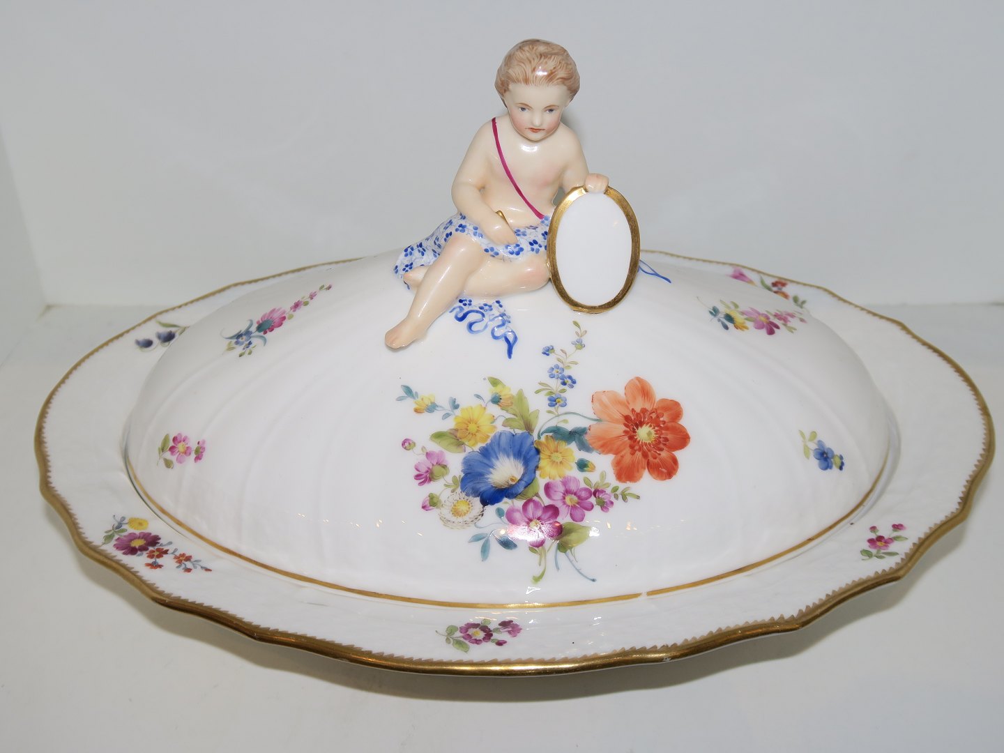 Royal Copenhagen Sachian Flower, large lidded oblong bowl with figurine of a boy.