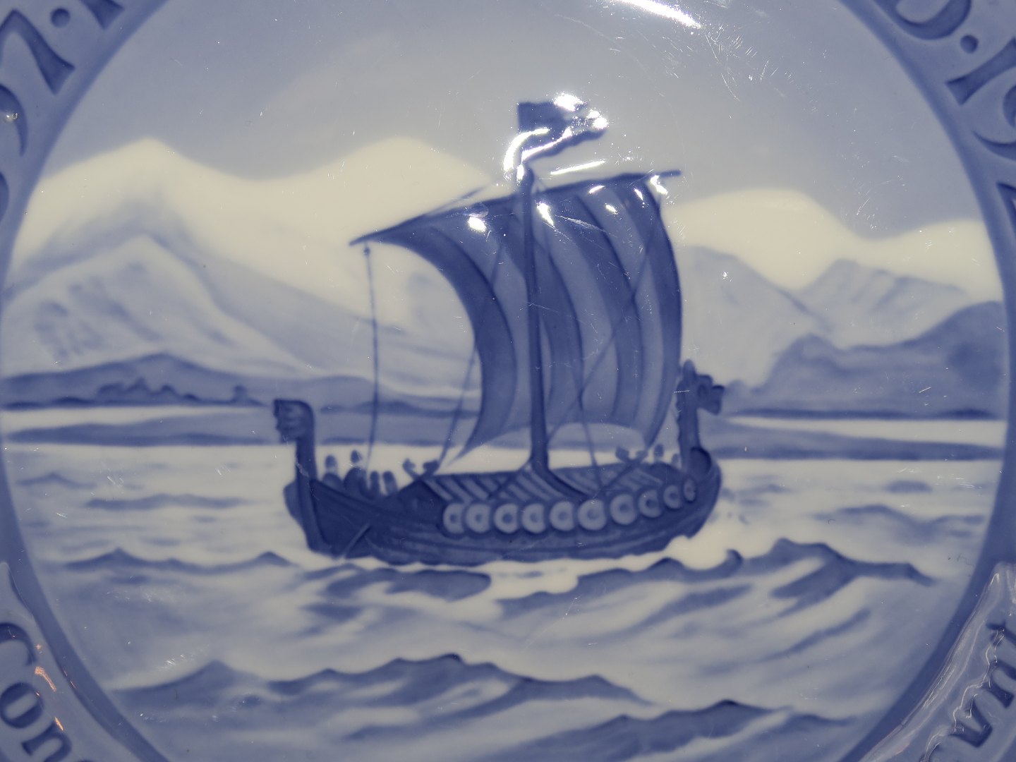 Royal Copenhagen Commemorative plate from 1922. Iceland Odd Fellow, "Concordia Parvae Res Crescent" - (Unity makes small thing grow). Factory first. Diameter 23.0 cm. Perfect condition.