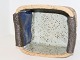 Firkantet krukke med ombukket kanter og forskellige glasurer.