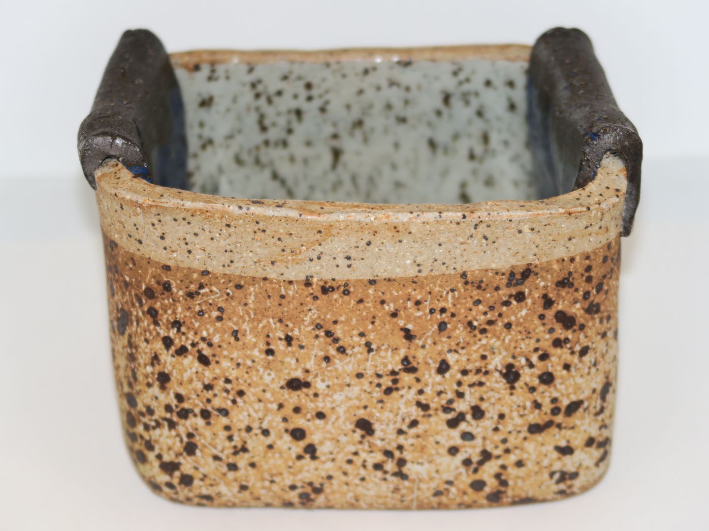 Firkantet krukke med ombukket kanter og forskellige glasurer