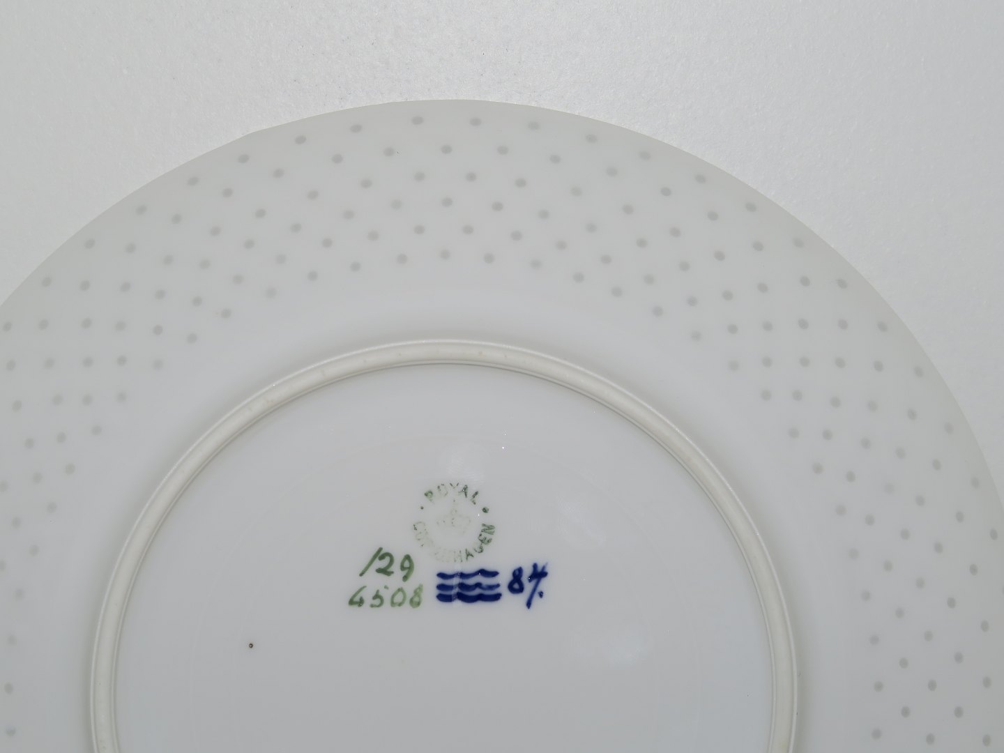 Royal Copenhagen Art Nouveau plate decorated with rose on dotted form.