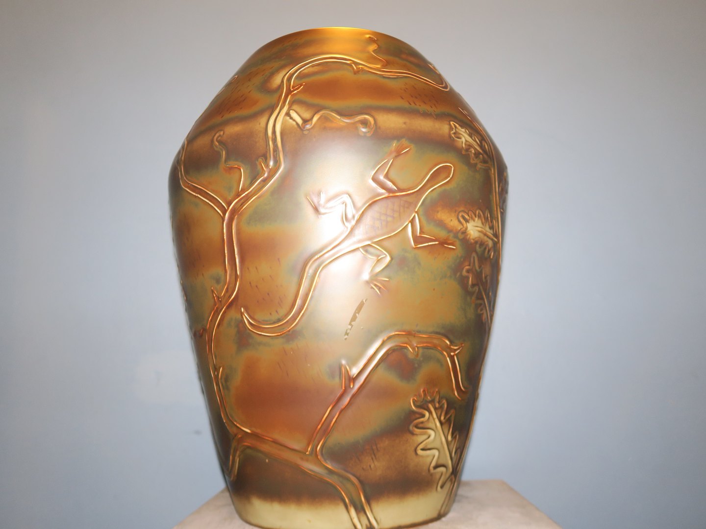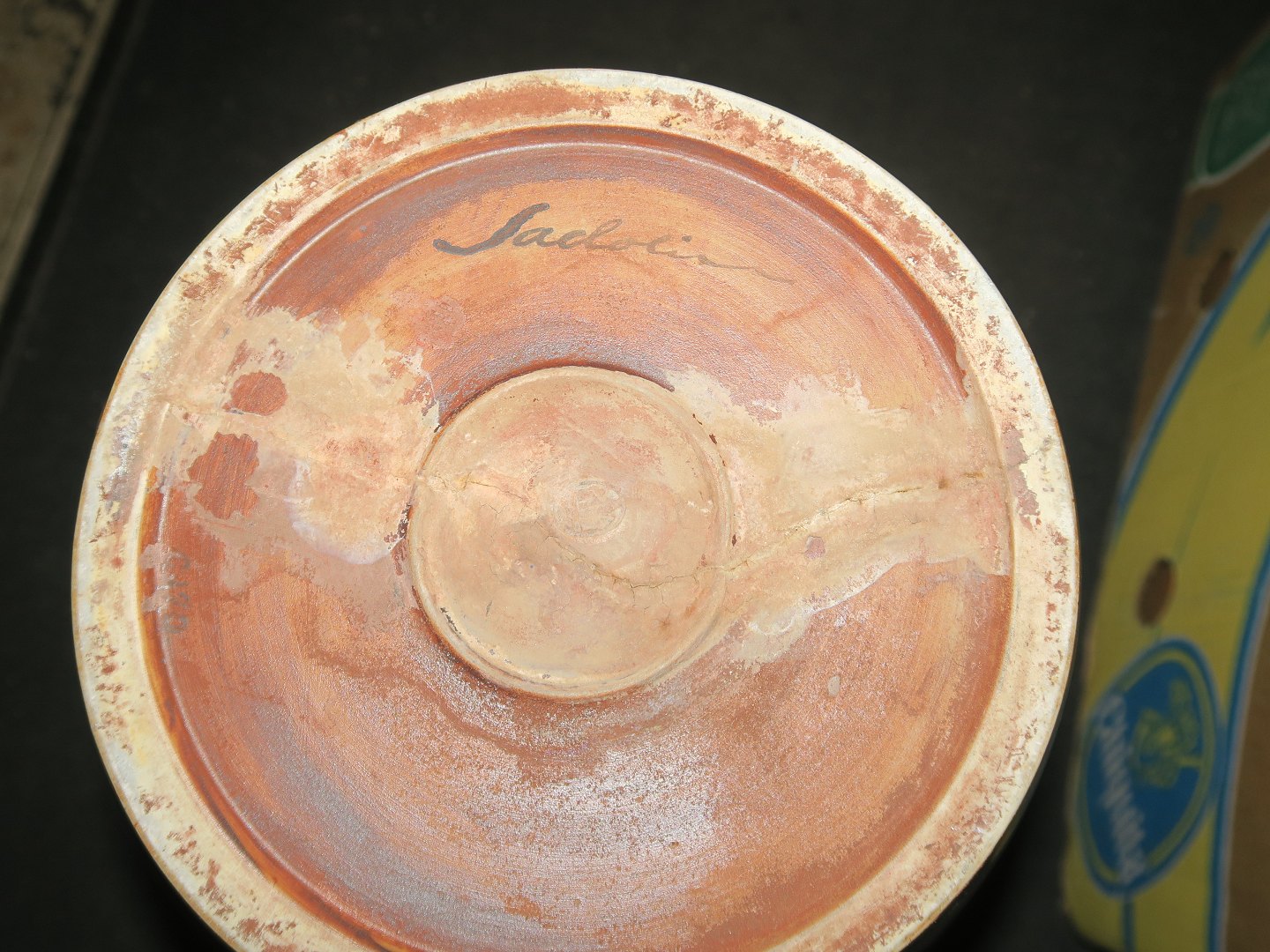 The vase was born with a firing crack at the bottom that the artist himself has rectified. Otherwise perfect condition with no chips, cracks or repairs.