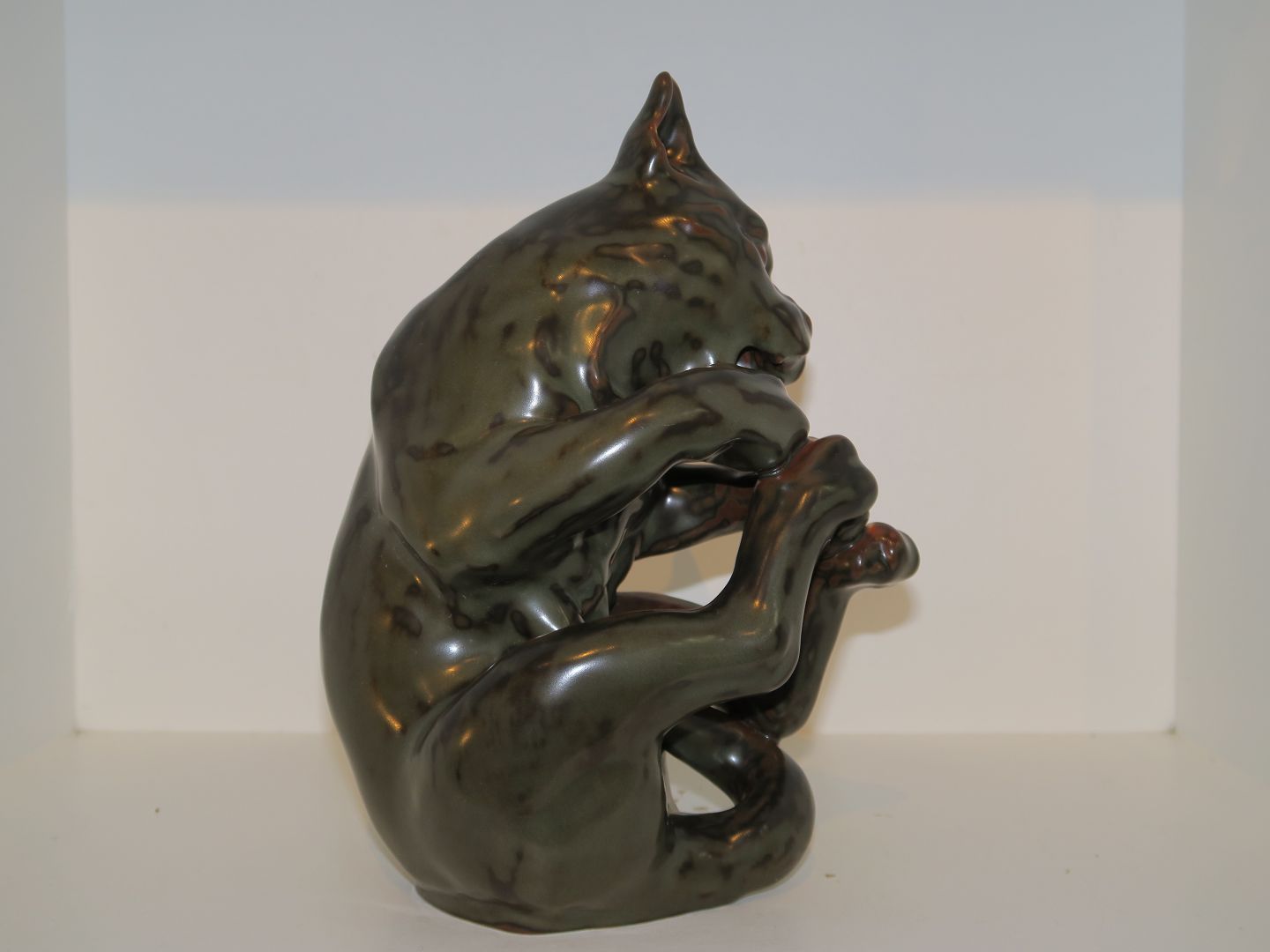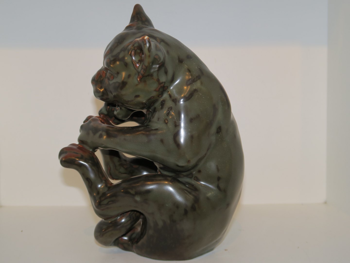 Meget skulpturel Bing & Grøndahl keramik figur af kat i den flotte bjørneglasur.