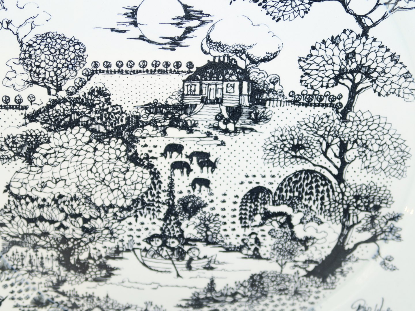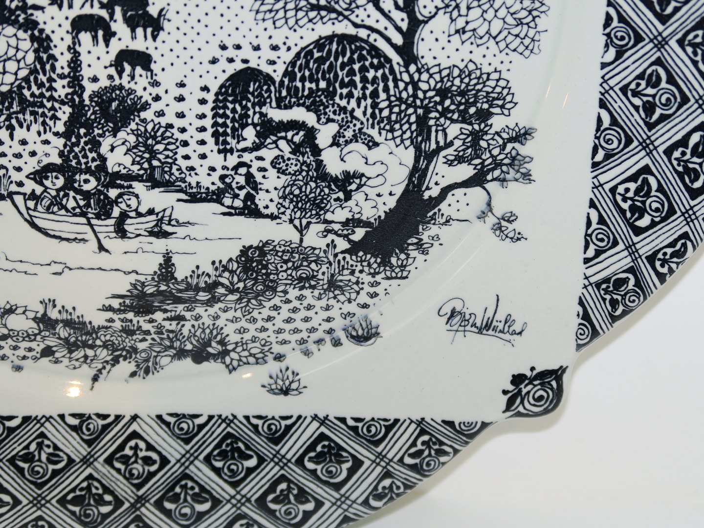 Nymølle keramik, Bjørn Wiinblad, ekstra stor platte, Eremitage. Dekorationsnummer 8004. Måler 37,8 x 37,8 cm. Perfekt stand.