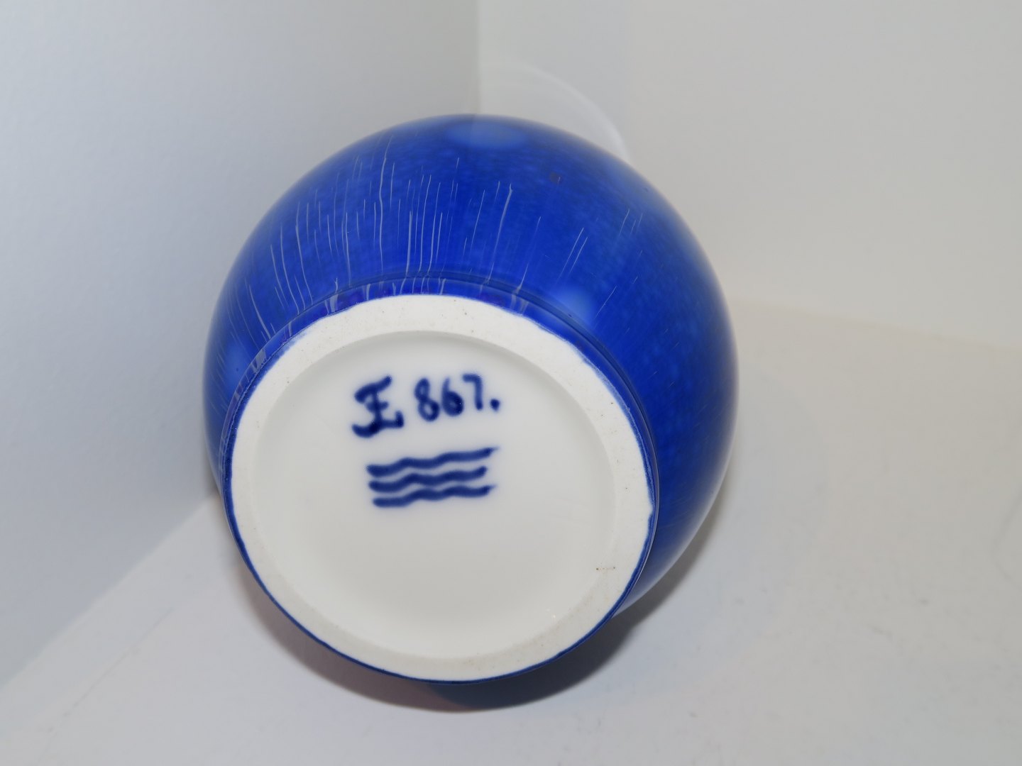 Royal Copenhagen Art Nouveau vase med en fantastisk blå krystalglasur. Unika.