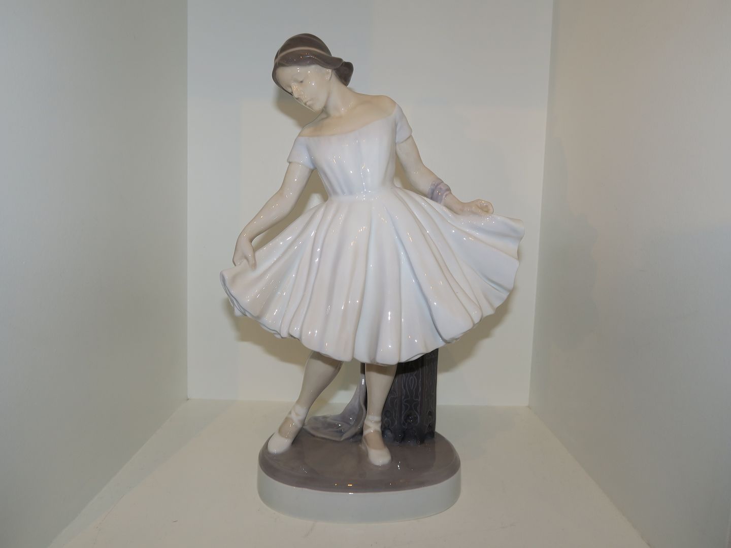Royal Copenhagen Art Nouveau, stor figur af ballerina / balletdanser. Faberiksmærket viser, at denne er produceret mellem 1898 og 1923. Dekorationsnummer 1374. 1. sortering. Højde 29,5 cm. Perfekt stand uden fejl.