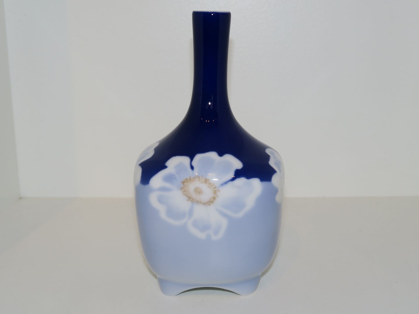 Royal Copenhagen Art Nouveau, kantet vase med mørkeblå top. Af fabriksmærket ses det, at denne er produceret mellem 1898 og 1923. Dekorationsnummer 367/135. 2. sortering. Højde 15,5 cm. Perfekt stand uden fejl.