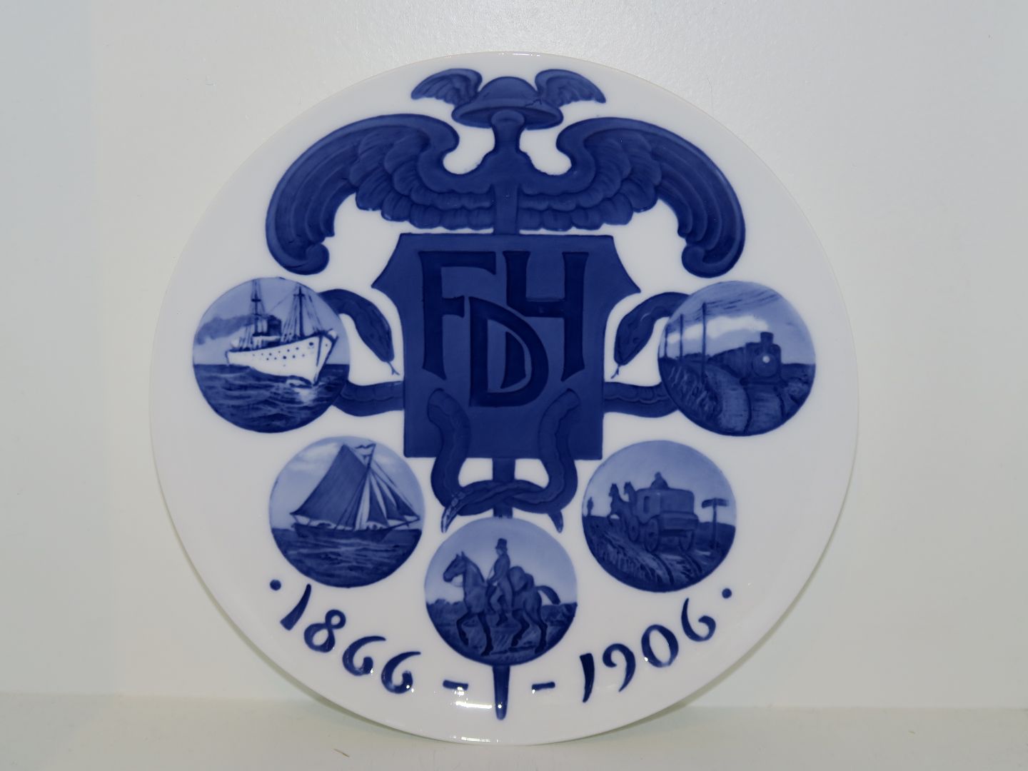 Royal Copenhagen Mindeplatte fra 1906. FDH Foreningen af Danske Handelsrejsende 1866-1906. 1. sortering. Diameter 19,8 cm. Perfekt stand uden fejl.