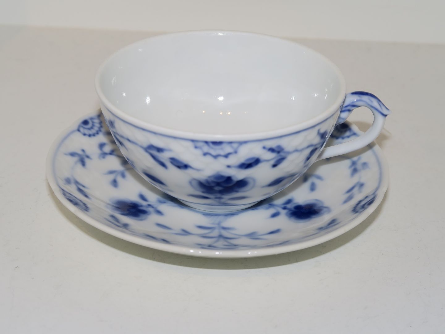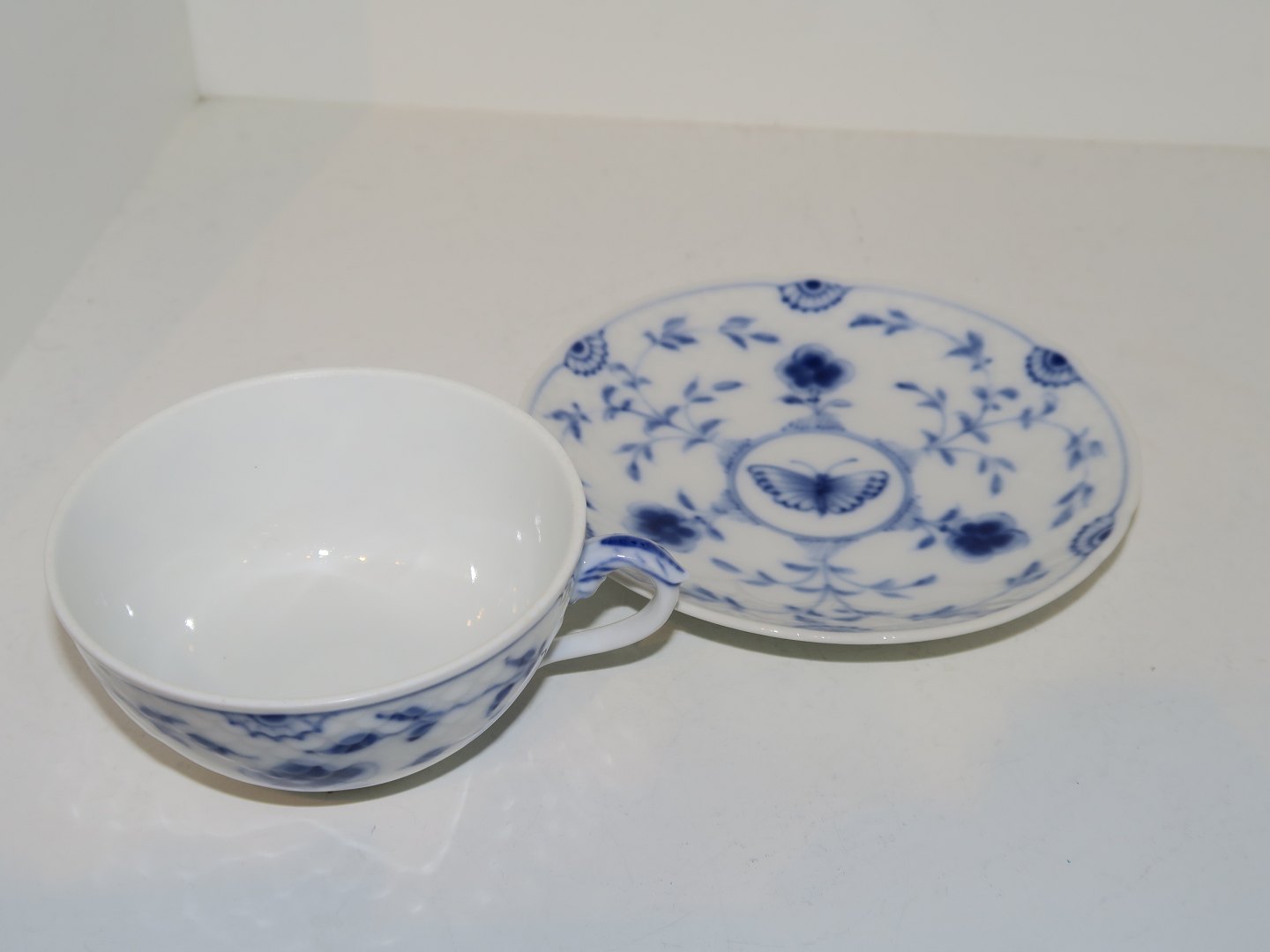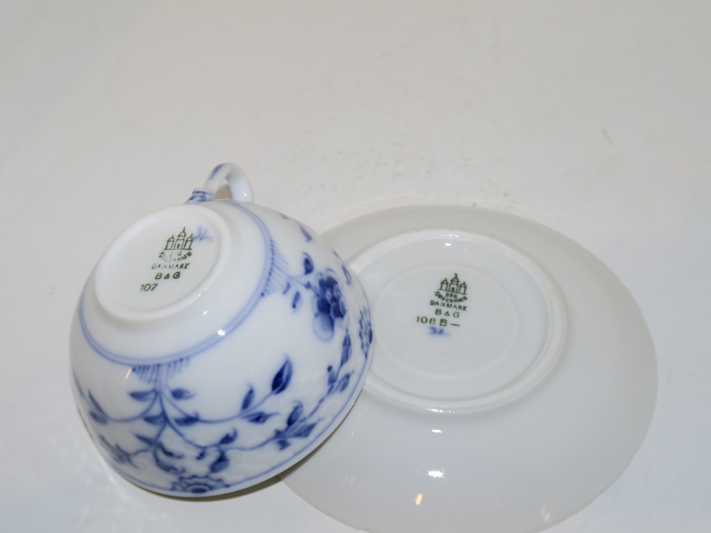 Dekorationsnummer på koppen 107, underkop 108B og er ikke der originalt hører til, men passer fint i størrelsen.