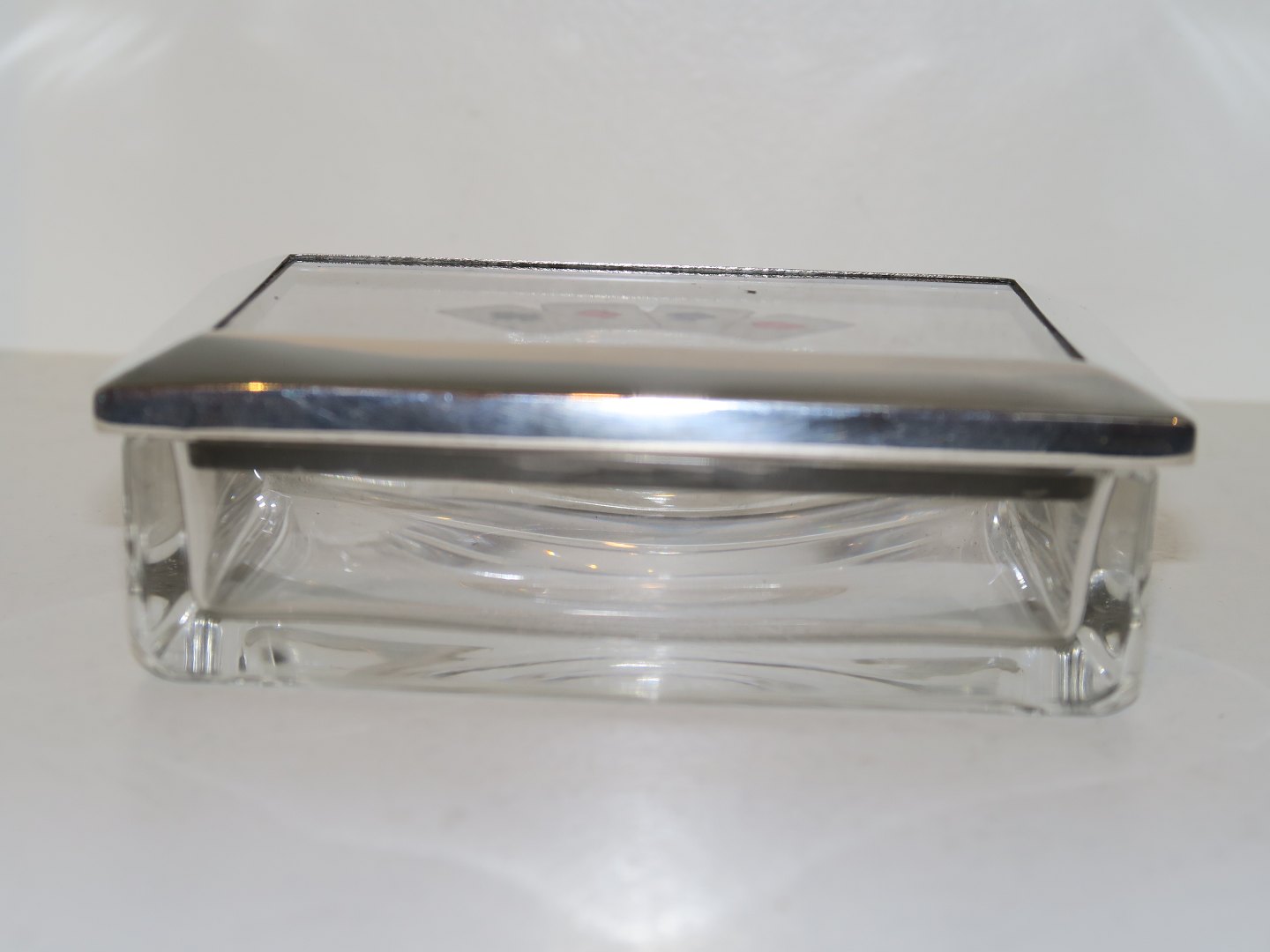 Æske til spillekort i kraftigt glas monteret med Michelsen sterlingsølvkant.