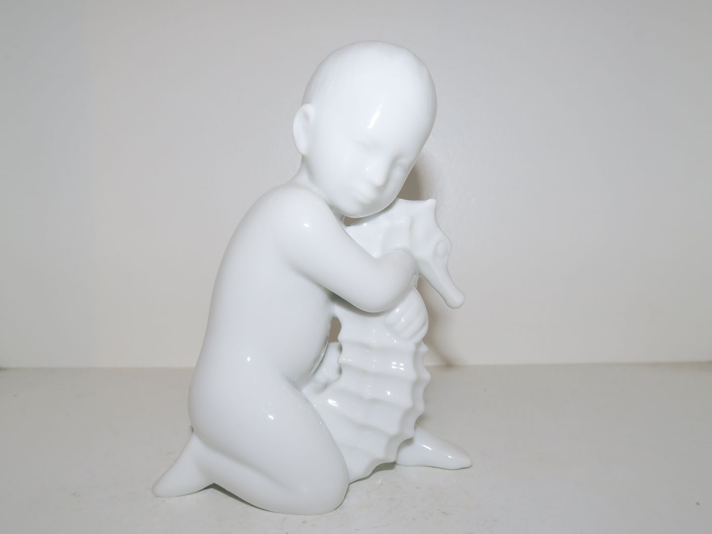 Hvid Bing & Grøndahl figur, havbarn - dreng med søhest.