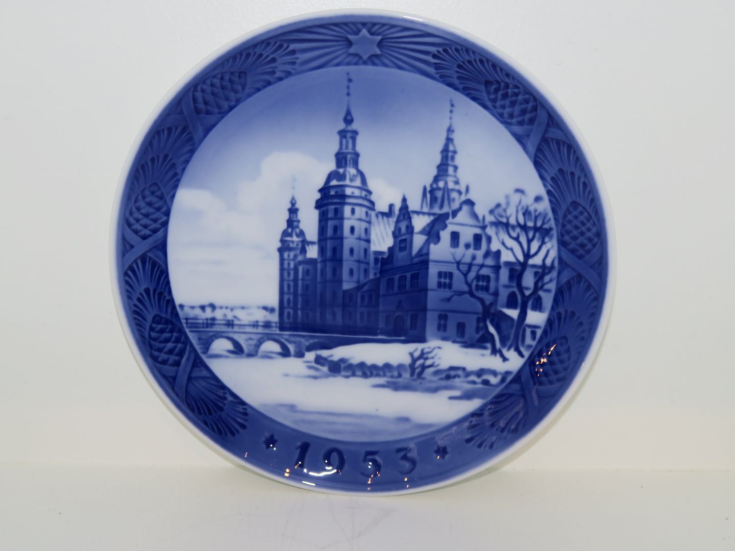 Royal Copenhagen. Juleplatte fra 1953 - Frederiksborg Slot. Diameter 18 cm. 2. sortering. Perfekt stand.