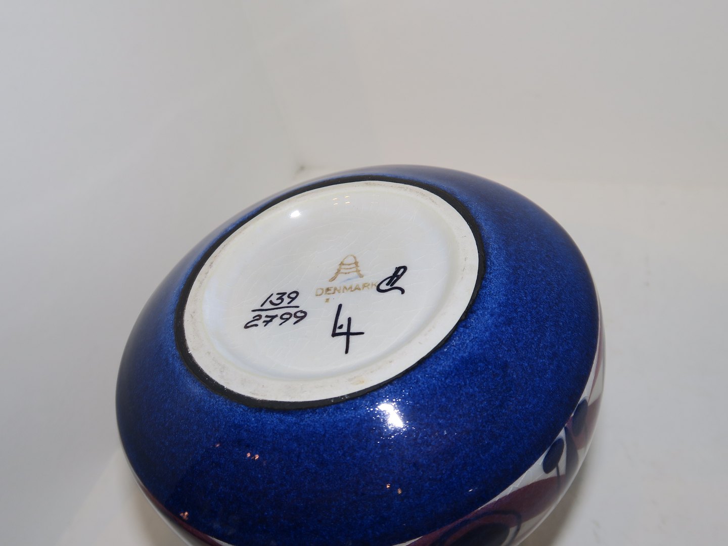 Aluminia - Royal Copenhagen Tenera, blue jug. Designed (and signed) by artist Inge-Lise Kofoed. Decoration number 139/2799. Factory first. Height 12.5 cm. Perfect condition with no chips, cracks or repairs.